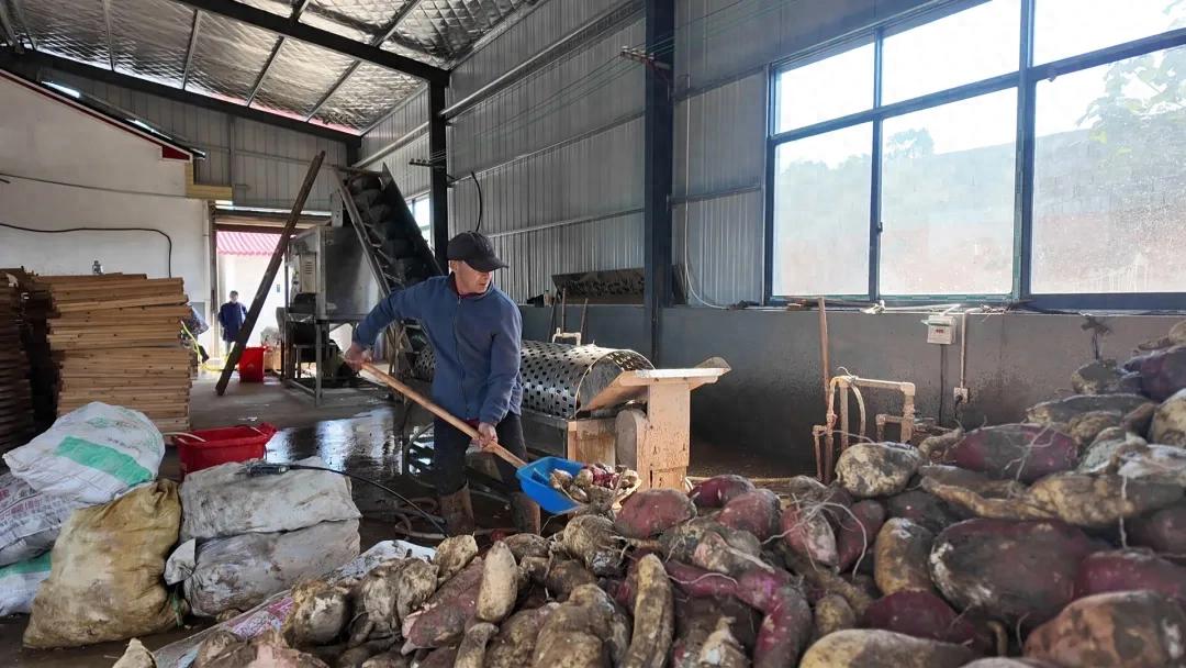 冬季是红薯粉生产加工的黄金期。近日,在赫山区岳家桥镇洗澡坪村红薯粉加工厂,工人们熟练地将新鲜红薯送入自动化清洗设备,经过精细的清洗、粉碎分离、过滤、脱水、浓缩,红薯变成浆状物。在机器的轰鸣声中,再经过蒸粉等工序,最终在晾晒板上制作成一条条晶莹剔透的粉条。