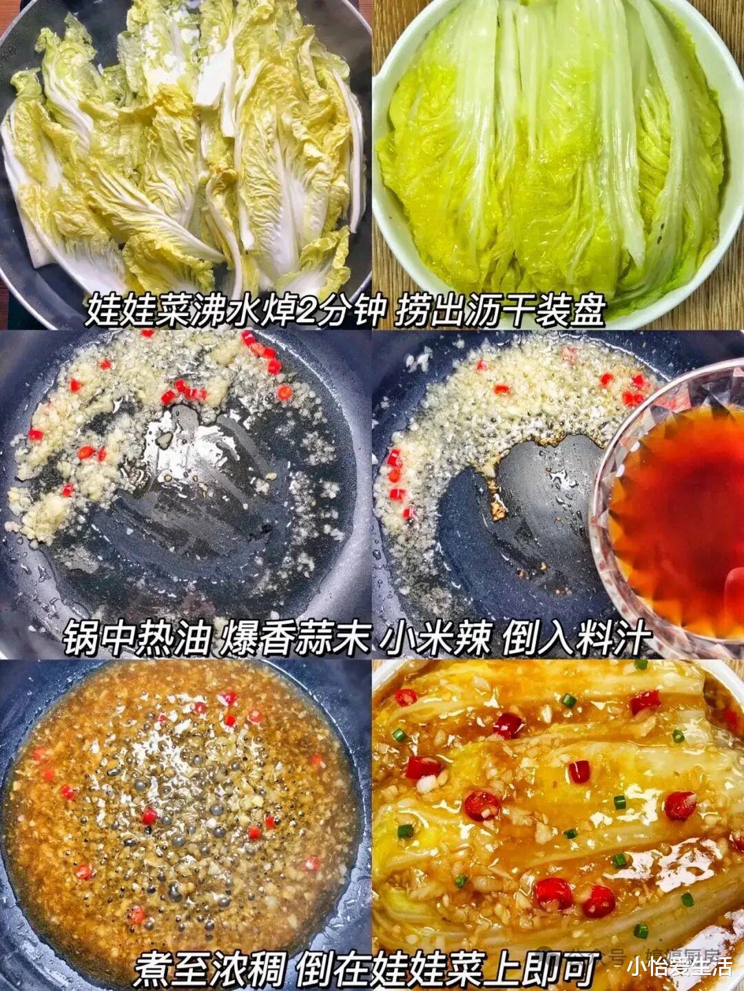 2. 焯水:水开后下娃娃菜焯1-2分钟,捞出沥干,这样能去掉生涩味。