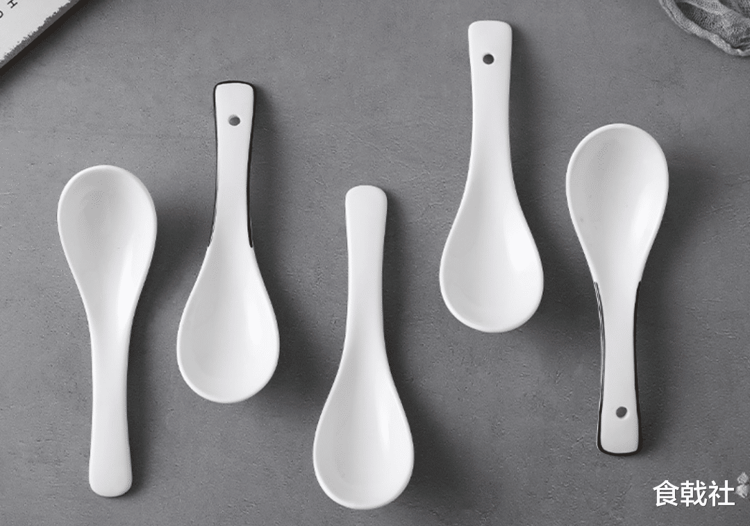 最后,如果你偶然发现整把勺子都是上过釉料的,那看来这家餐厅在选品上是花过心思的。这种全釉料无孔陶瓷勺,是在勺柄末端打磨后又补了低温釉,做一次重烧,补釉的颜色基本能和第一次高温釉烧制保持一致,让人感觉陶瓷勺的整个釉面做到了浑然一体。工序越复杂,做出来的勺子成本越高,所以说:选择全釉料陶瓷勺的餐厅,应该是在细节里下了功夫的。