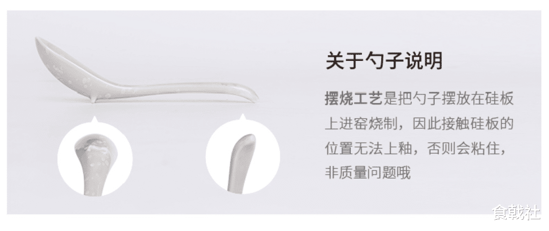 陶瓷勺整个勺面都可以放进嘴中,因此和口腔的接触面必须要保证是光滑的外表面,这就需要在烧制时有上釉。可釉料在烧制时,一旦和其他物件有接触,就会产生表面粘连。你可以先拿起家里的陶瓷碗,看它格外粗糙的碗底,这里就是没有上过釉的地方。