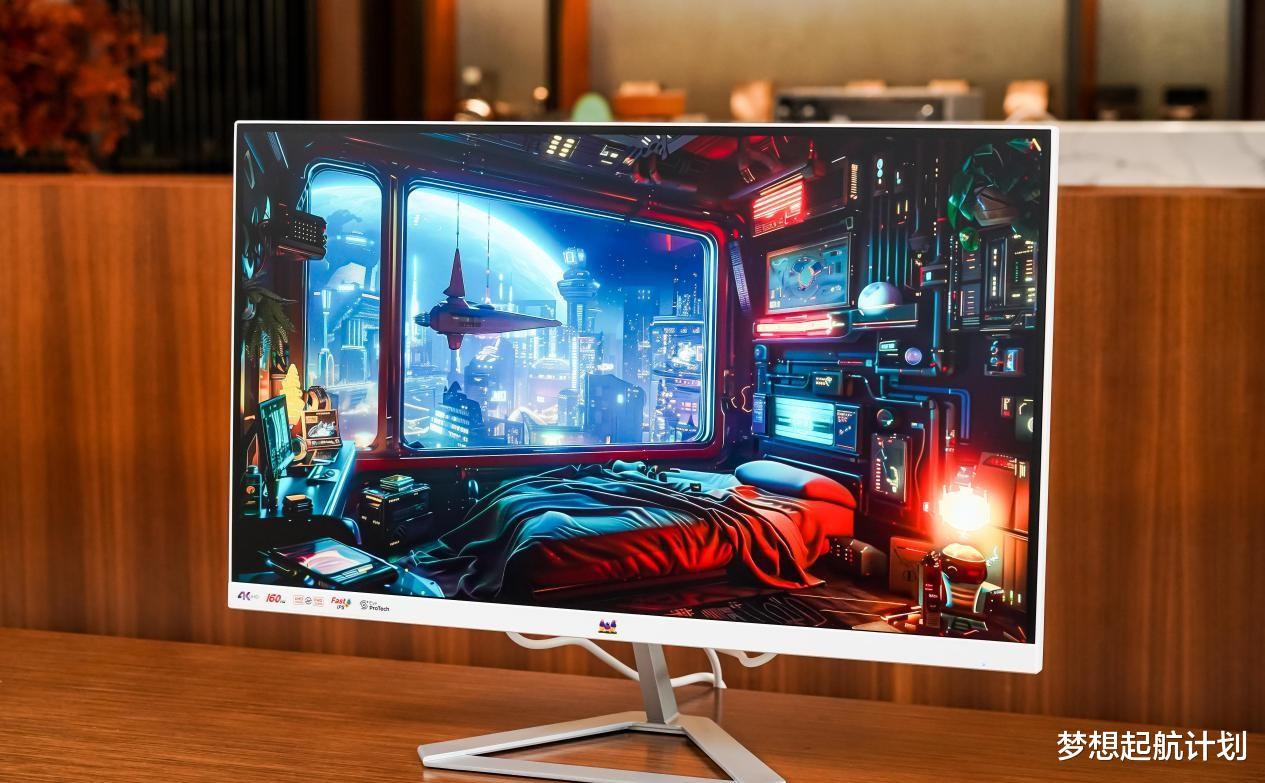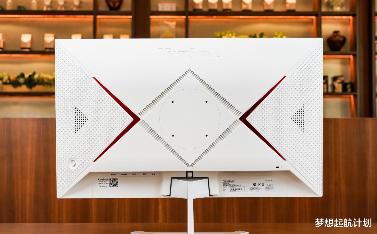 第一次看到这台显示器,我就被它的外观深深吸引了。纯白色机身,搭配简洁的线条,高级感满满。 不同于市面上那些花里胡哨的设计,这款显示器的设计语言相当克制,却恰到好处地展现了现代美学。三角形的金属底座,稳固而不占空间,更重要的是,它完美地契合了整体的纯白主题,丝毫没有违和感。 背面巧妙的双“X”散热格栅和反光条设计,也让它在细节上更显精致。试想一下,在这样一台显示器前工作或游戏,是不是心情也会变得格外舒畅?