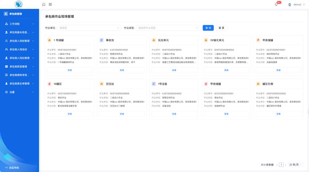 建立承包商资质准入审核机制,同步关联培训记录与作业许可,实时追踪作业表现与进度,避免“资质脱节”、“过程失管”。