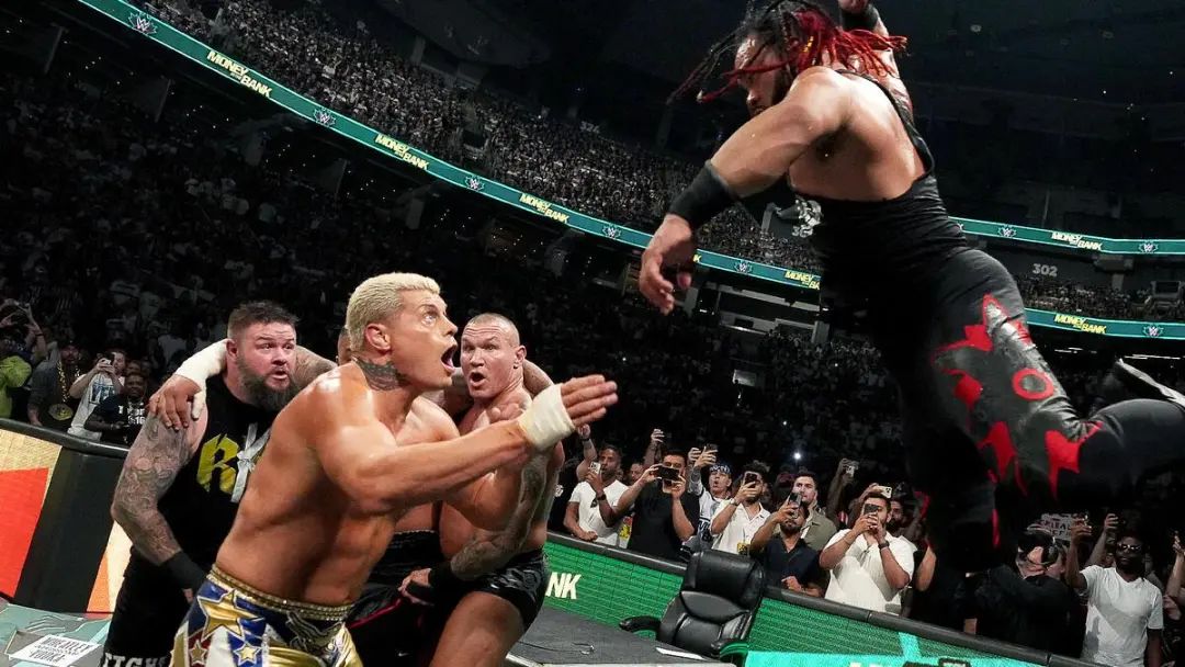 在昨日最新一期SD节目中,科迪·罗兹宣布了同索罗·西科亚在今年夏日狂潮大赛上将进行的毋庸置疑WWE冠军赛,随后科迪便遭遇了新时代部落家族的四人围殴,哪怕兰迪·奥顿赶到也是独木难支,到了最后,奥顿更是吃了三人合力炸弹摔的爆桌,科迪则被困在边绳上爱莫能助。