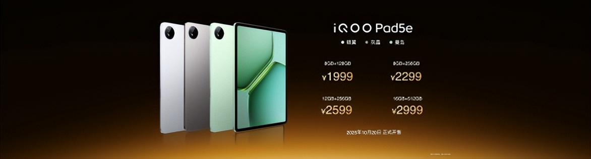 iQOO Pad5e、iQOO WATCH GT 2 和 iQOO TWS 5 的售价分别是 1999 元起、499 元起和 399 元,组合购买更优惠。