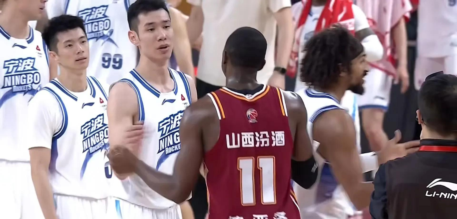 第三节,法尔篮下强吃刘传兴2+1,加罚不中。刘传兴回敬法尔不中,黑根斯冲抢篮板造犯规两罚中1!王俊杰篮下打进,诺威尔不中,王俊杰助攻法尔打进,王俊杰再次反击得分。山西汾酒男篮第三节开赛3分钟内双方战成4比7,59比41宁波,山西汾酒男篮叫停。