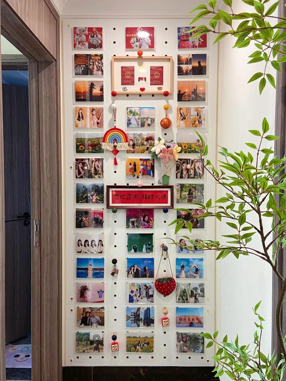 家门口那面墙又想实用,还想美观,最后选择了洞洞板,真的太香了,后悔没早点装。日常用的帽子、手套、包包,再摆上一些小摆件,既美观又实用。