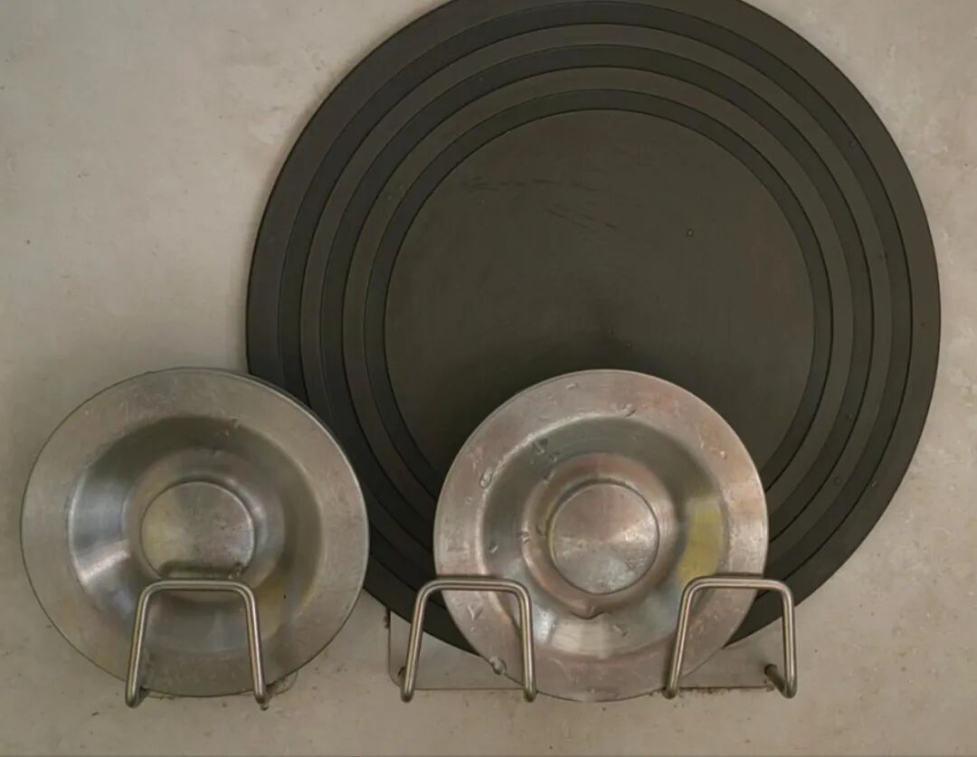 剩余两个贴在厨房墙上,无处安放的笨重的锅盖终于找到它的容身之所。