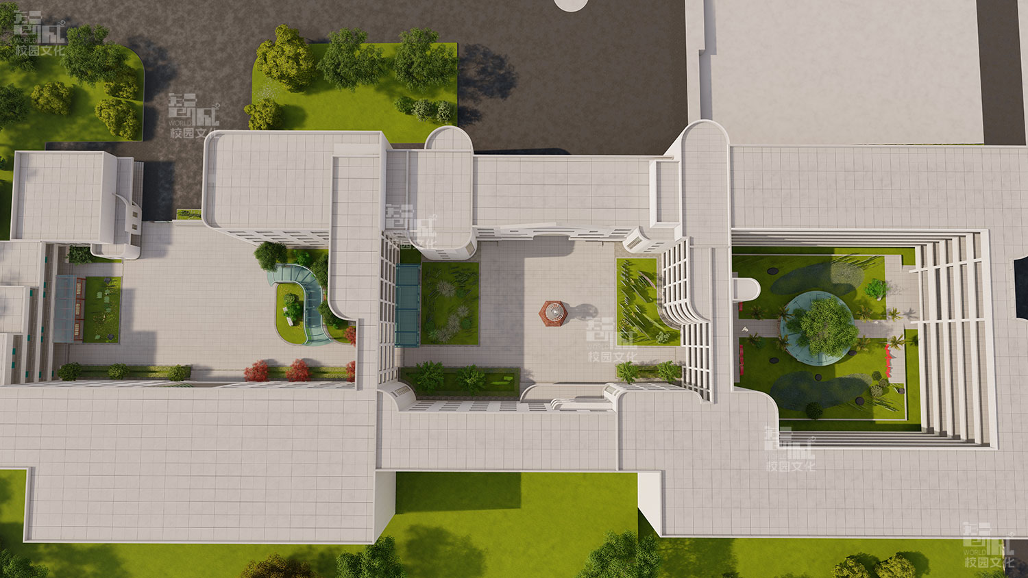 在这所中学的校园里,三个中庭原先就处于这样的“鸡肋”状态:其中一个摆放了一座名为“经纬”的雕塑,但艺术性较弱,未能引起学生的共鸣;周边草坪虽然绿化达标,却因缺乏人文关怀和功能设计,很少吸引学生驻足。我们的校园空间改造设计团队在初期调研中,听取了校长的愿景:“我希望我们的学生能在这里培养‘习惯’、怀抱‘梦想’,最终拥有‘格局’——从日常行为的塑造,到个人目标的树立,再到视野与胸怀的开拓。”学校这一教育理念成为整个校园空间改造工程的核心。