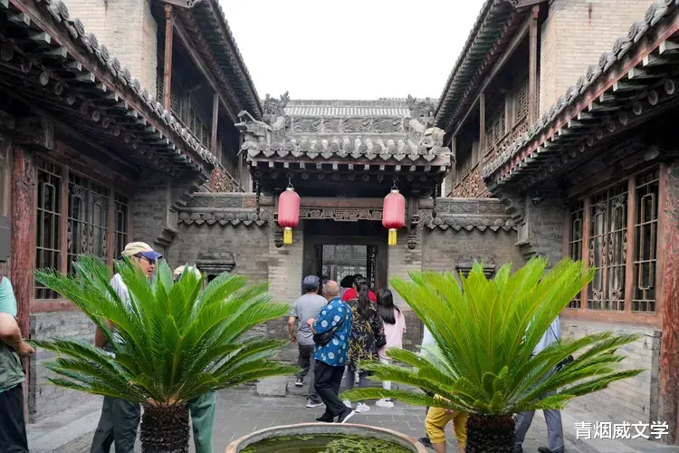 古旧的砖瓦诉说着岁月沧桑,檐下红灯笼添了几分鲜活。游人穿梭其间,与这承载着晋商过往的宅院,共同绘就出一幅古今交融的生动图景。