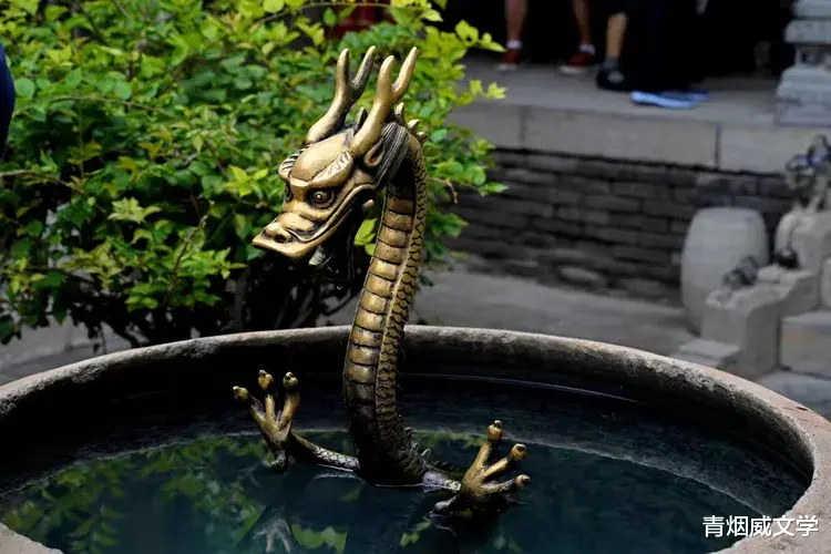 王家大院里,水缸中那条黄铜铸就的龙,昂首挺胸,龙角张扬,龙爪似要腾空。在水的映衬与绿植的环绕下,透着一股灵动的威严,仿佛下一刻便会翻涌而出,尽显祥瑞之气。