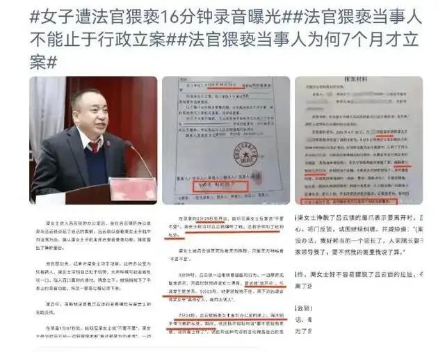7个月啊。一个女人,拿着录音,跑到法院去求公道。材料交了,笔录做了。呢。泥牛入海。院里的纪检不知道吗。相关负责人没听过那段录音吗。门儿清。可大家就是默契地保持着一种诡异的安静。直到录音被人捅到了网上,舆论的火烧到了眉毛。