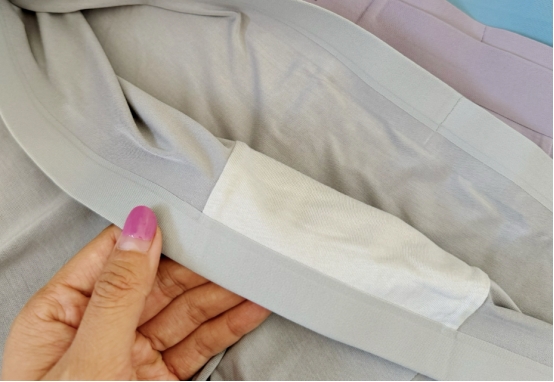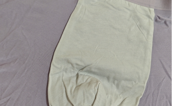 从实际穿着体验来看,内裤的纯棉面料舒适性不错,但由于仅使用了40支棉料,整体的细腻感稍逊色。同时,内裤并未经过抗菌测试。