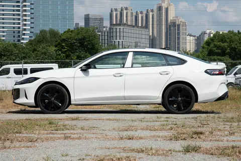 车身侧面是凌风版的设计精髓——19英寸多辐式熏黑轮毂采用双色切割工艺,搭配225/40 R19马牌MC6高性能轮胎,不仅视觉冲击力强,更通过优化胎面花纹与橡胶配方,将湿地抓地力提升15%,兼顾了操控稳定性与安全性;无框车门设计是最大亮点,其采用双层夹胶玻璃与加强型铰链结构,实测高速行驶时车内噪音仅65分贝,隔音风噪控制达到奥迪A7L水准,兼顾了轿跑的仪式感与日常实用性;车顶线条从A柱末端开始下滑,至C柱处形成优雅的溜背造型,配合黑色车顶与镀铬饰条的撞色设计,层次感丰富。
