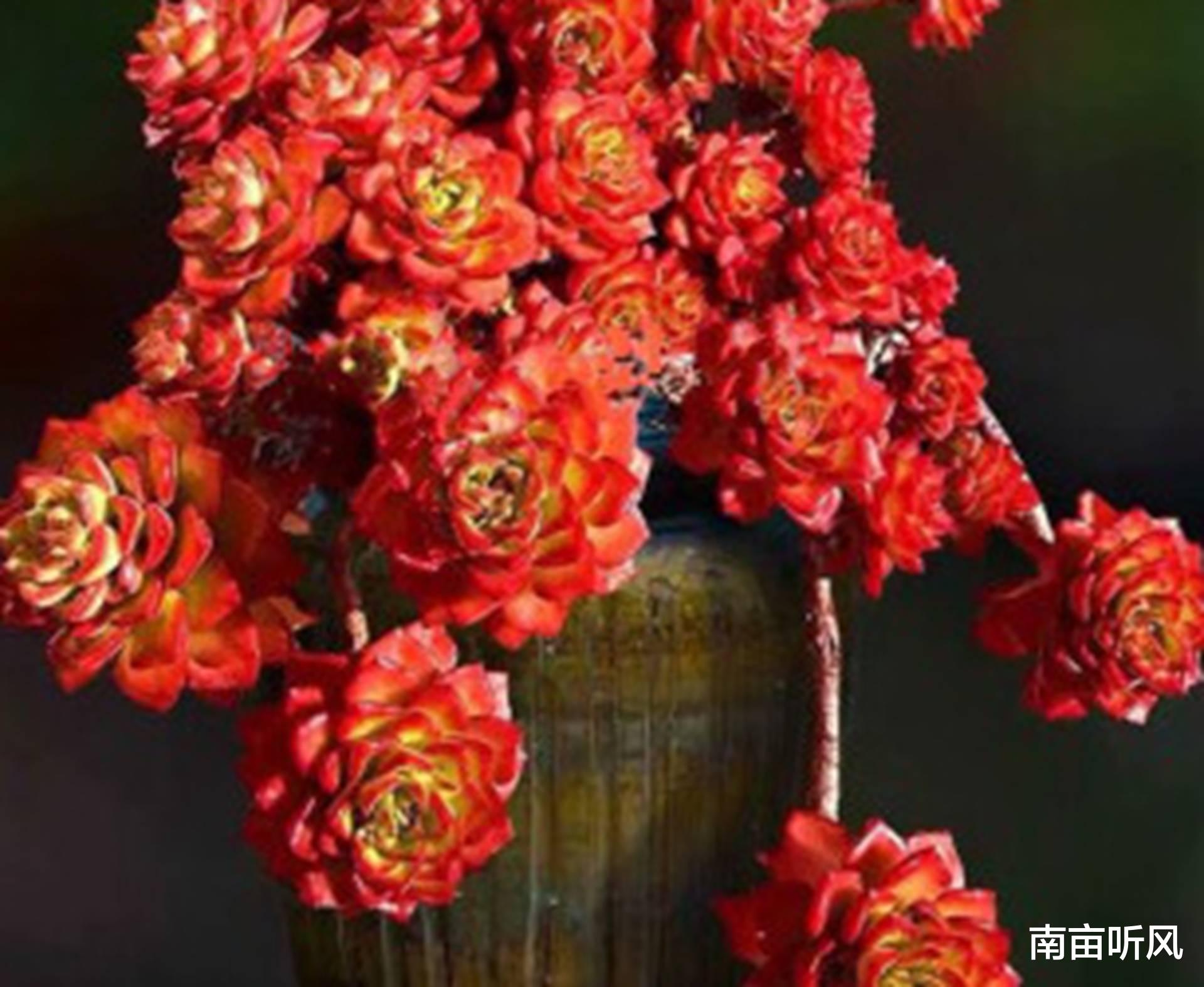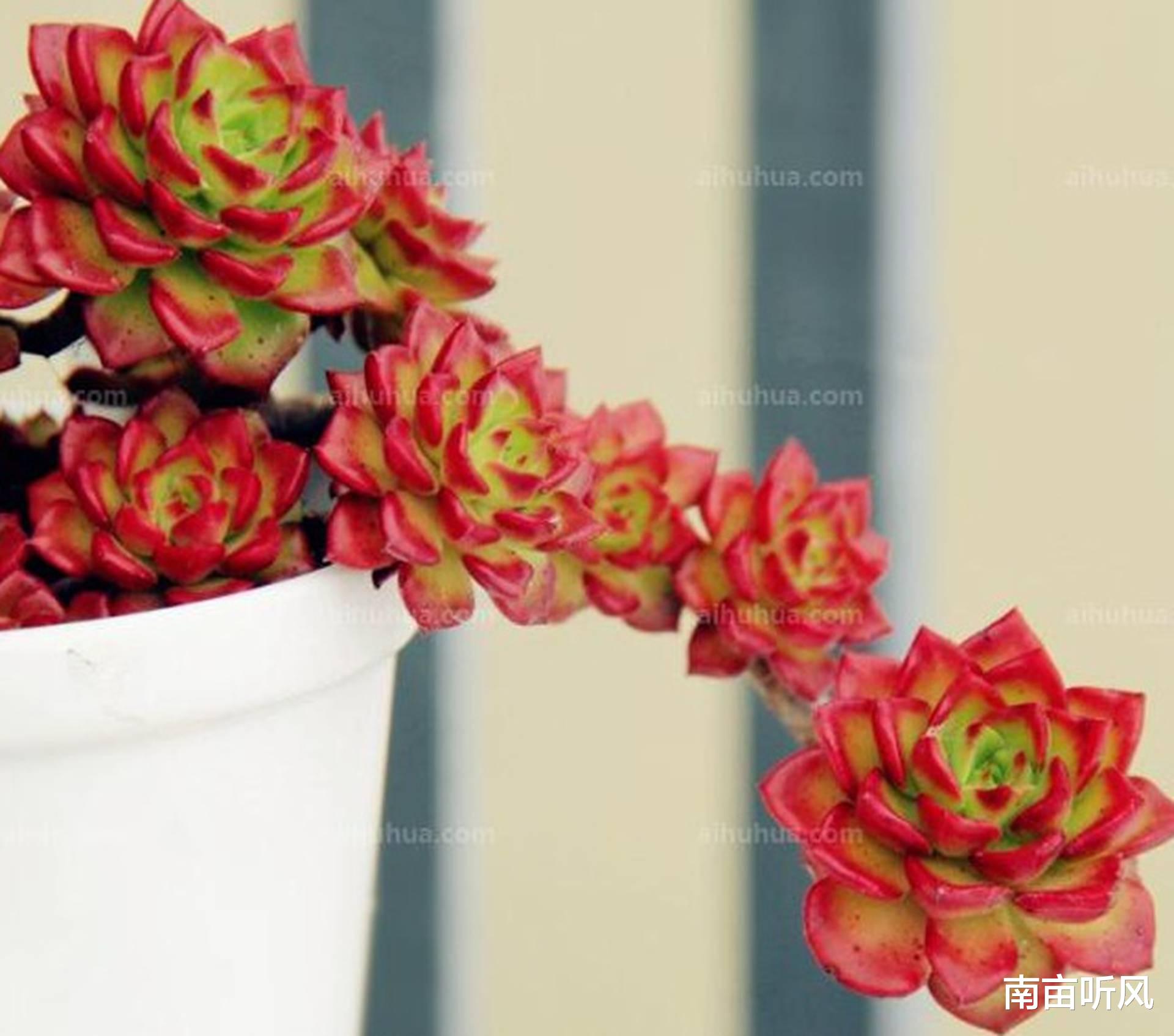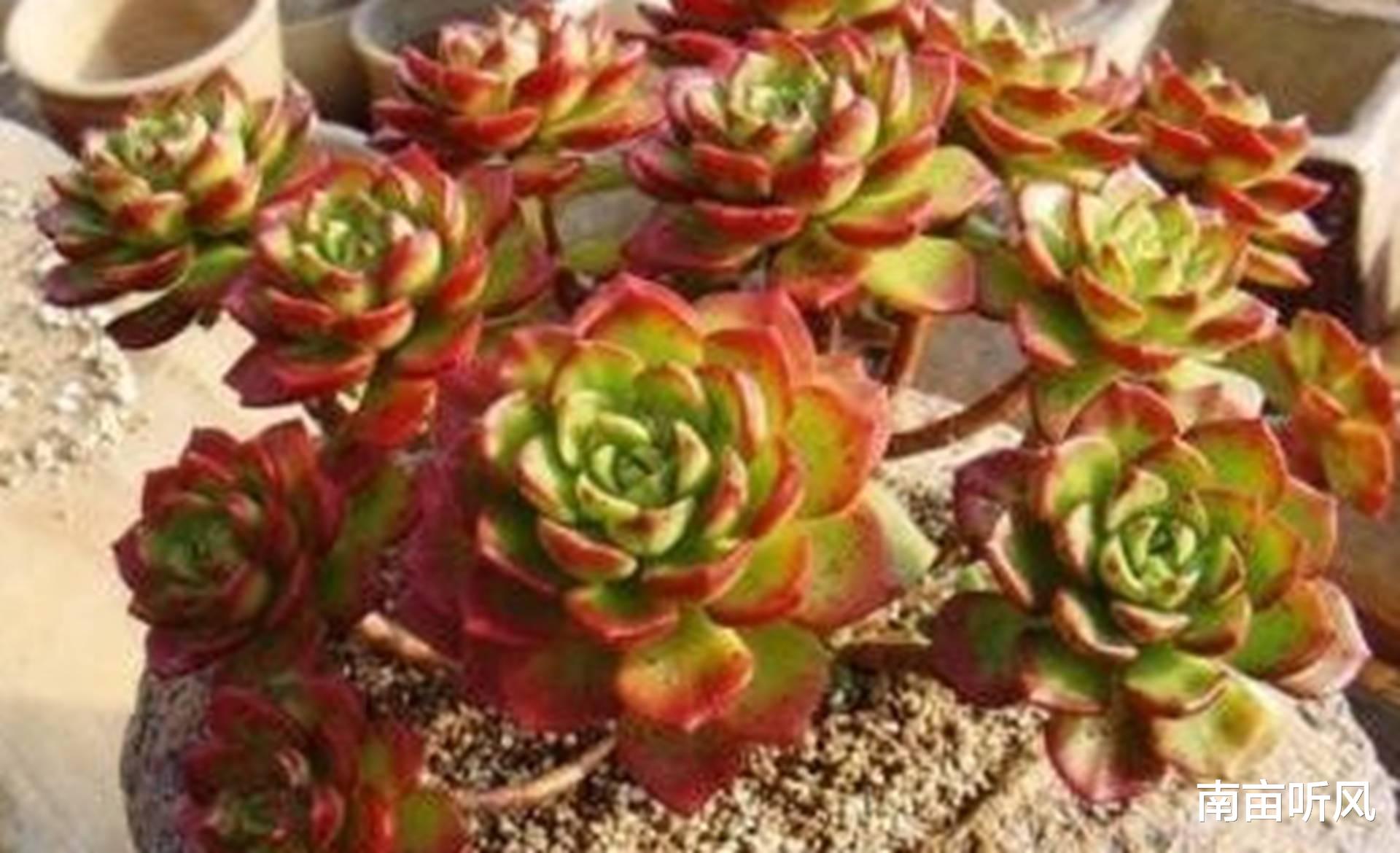 先来说说蒂亚吧。蒂亚属于景天科拟石莲花属,它是一种比较小巧可爱的植物。它的叶片很紧密,组成了一个类似莲座的形状,颜色也很特别,在充足的光照下会呈现出那种迷人的红色。和它的同属植物相比,比如说静夜,静夜相对来说叶片就比较松散一些,颜色也不会像蒂亚在光照好的时候那么浓烈得红。还有胧月,胧月的叶片就没有蒂亚那么厚,而且颜色比较清新的灰绿,形状也不是那种紧密的莲座。