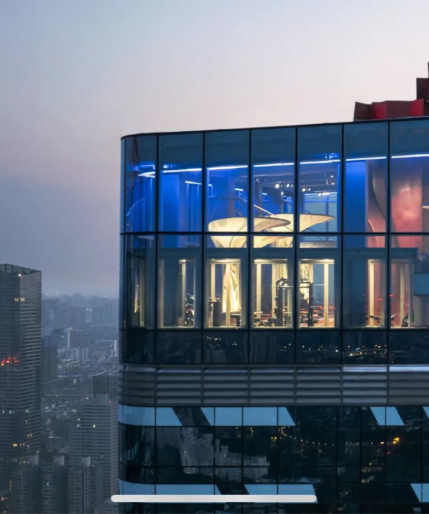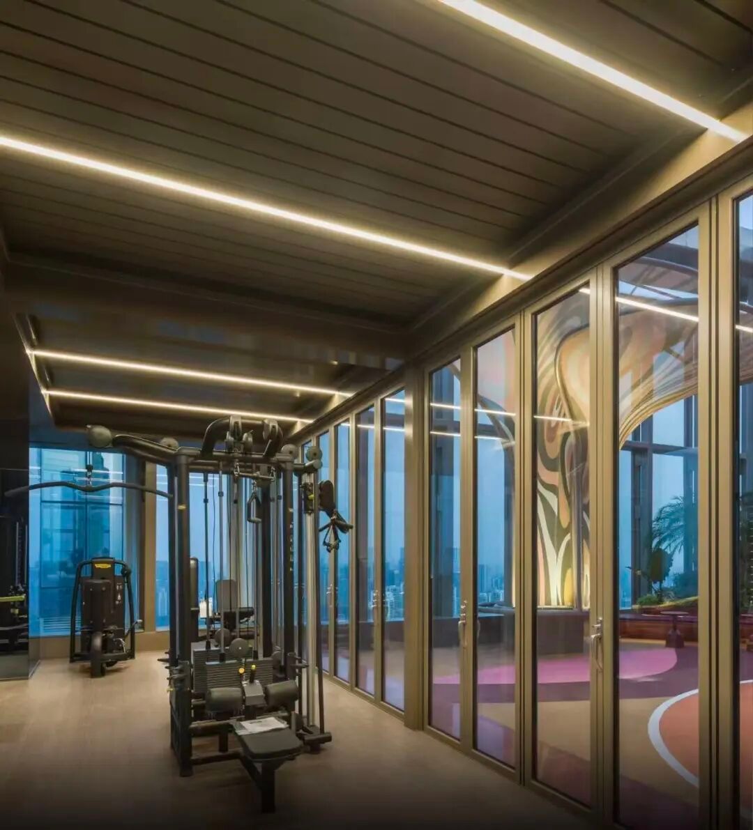 我步入66楼其中的一间锻炼室,即刻与锦江震憾相见。它不仅是紧邻锦江,更将更辽阔的锦江收入怀中。这让一间不起眼的锻炼室也成了要排队的打卡点,更不要说主要观景点。我在此和朋友闲聊了一会,就看到四、五组网红排队取景。