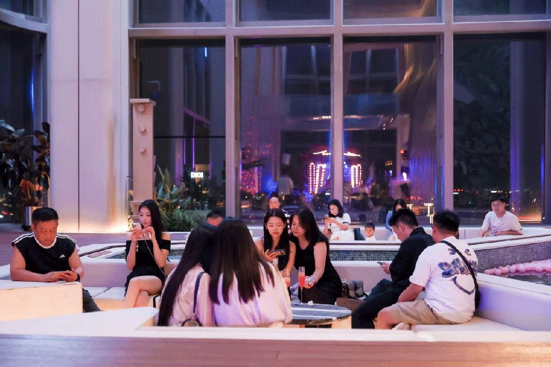 第一是自由空间。嘉佰道深知,自然疗愈才是老城最稀缺的环境,于是将大片的绿意放在身畔、眼前。你可以在水池旁坐一下午,嘉佰道的“服务天团”既提供细致服务,又与你保持距离,从而创造繁华之中的一方自由、自在园林。