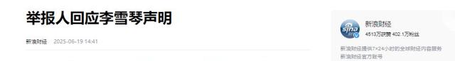 新浪财经(举报人回应李雪琴声明2025.06.19)