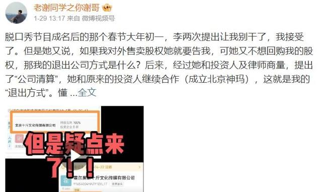 对于李雪琴在声明中所说的,为什么是泄密不是造谣,如果老谢说的消息虚假,那又为什么李雪琴不是告他诽谤。