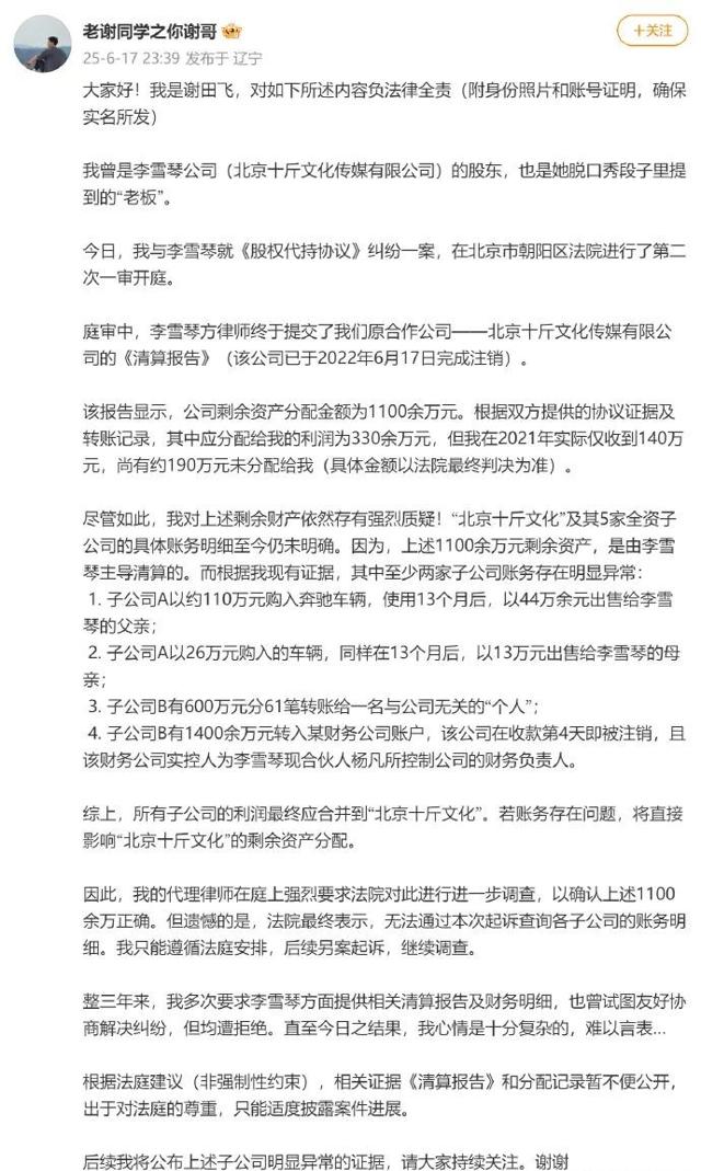 新浪财经(与多年好友对簿公堂!公司财务问题被举报,李雪琴有钱就变了?2025.06.20)