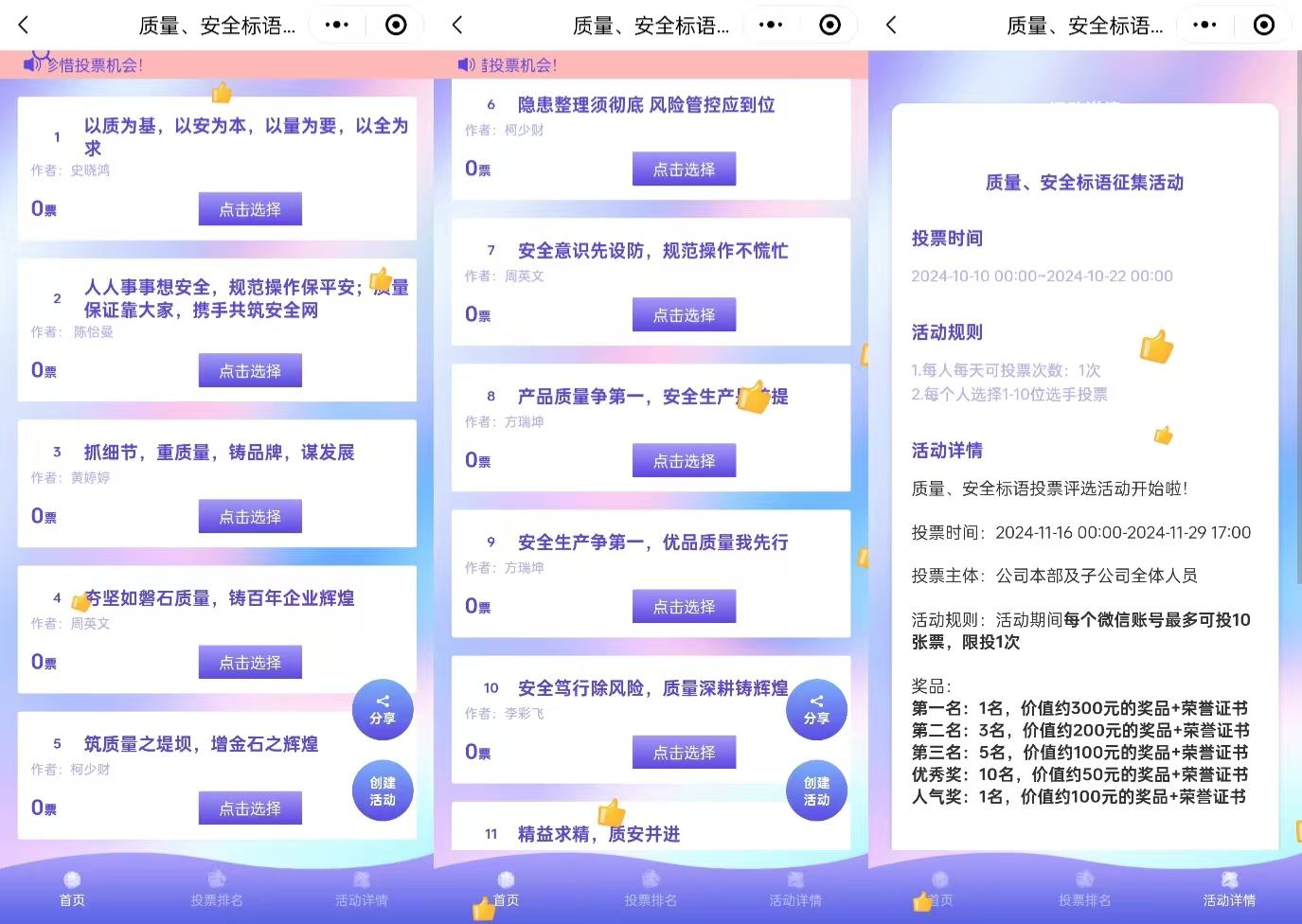 投票驿站自动生成排行榜,谁的标语是“安全金句之王”一目了然!