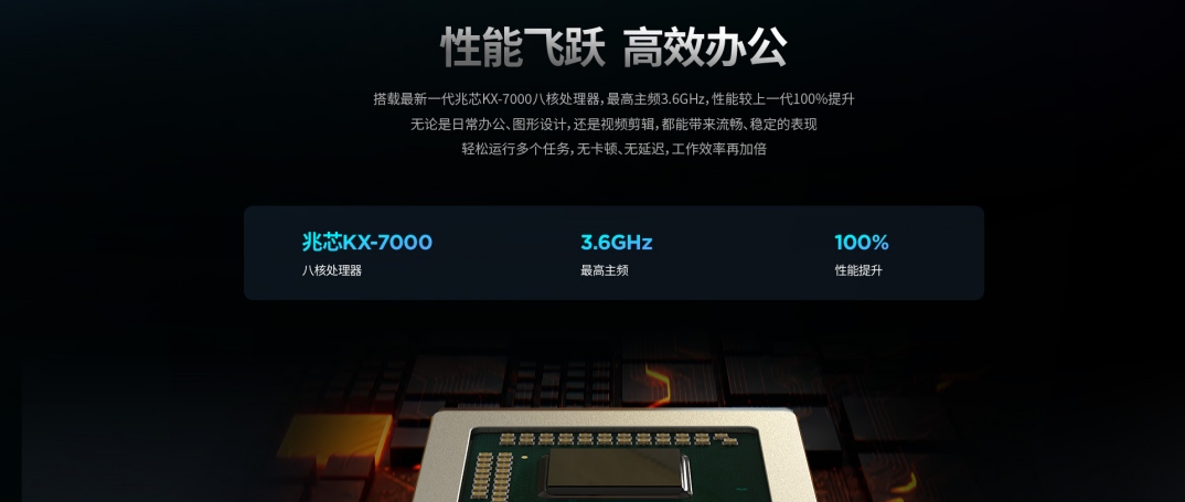 性能是办公设备的核心底气,开天M90Z G1S直接搭载兆芯开先KX-7000八核处理器,3.6GHz高主频搭配32MB三缓,计算性能较上一代实现翻倍提升。搭配DDR5高速内存与PCIe 4.0NVMe SSD的黄金组合,不管是同时运行多个办公软件、加载大型Excel表格,还是处理图形设计、视频剪辑等重活,都能秒开秒响应,告别卡顿等待。