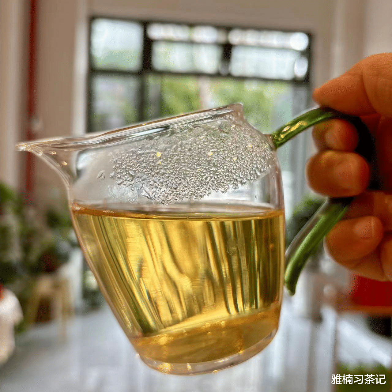 通过闻公道杯的冷杯香,第一泡出汤便可闻到幽幽兰香和浓郁的花蜜香。经过四年的转化,茶汤的香气已经由新茶的鲜爽清香变成了让人更迷恋的浓郁花蜜香,入口比较清甜。