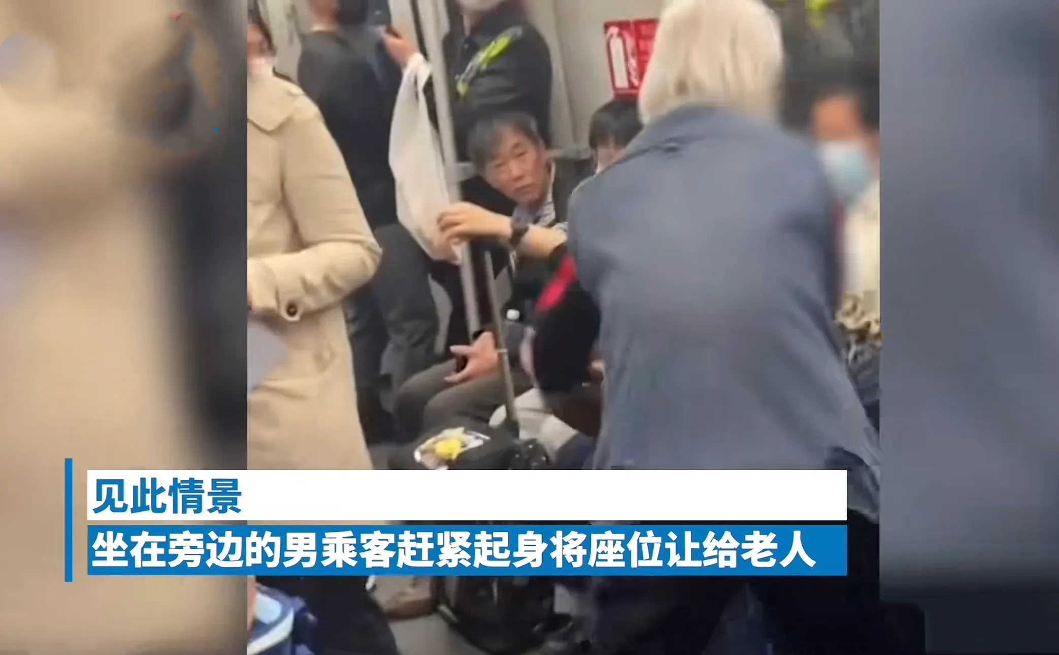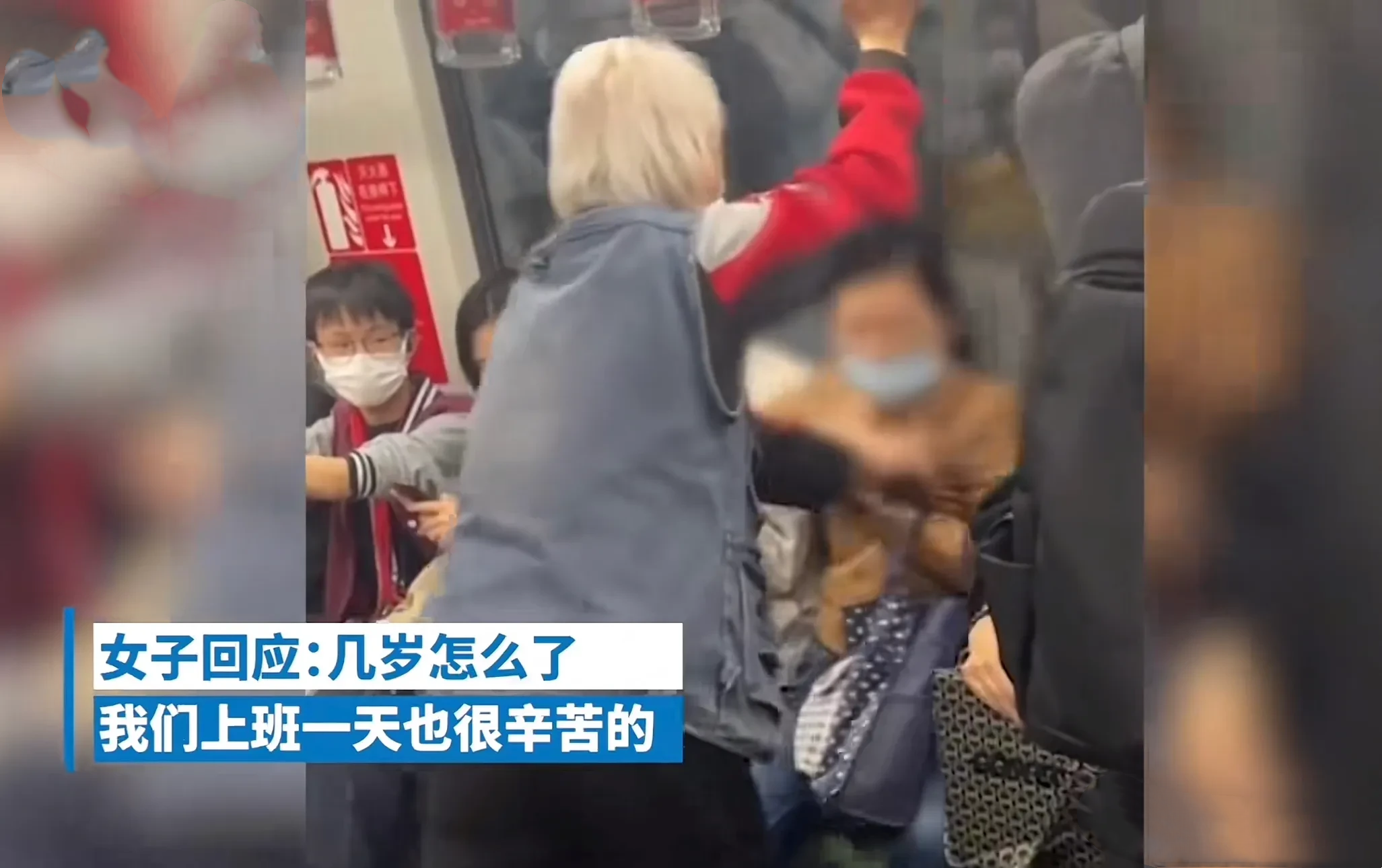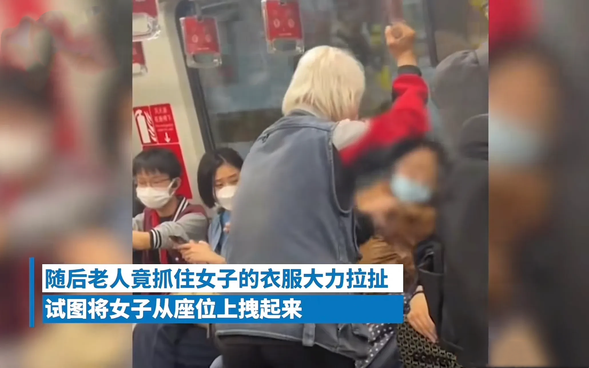 老人地铁索座未果,动手将女乘客强行拽离座位
