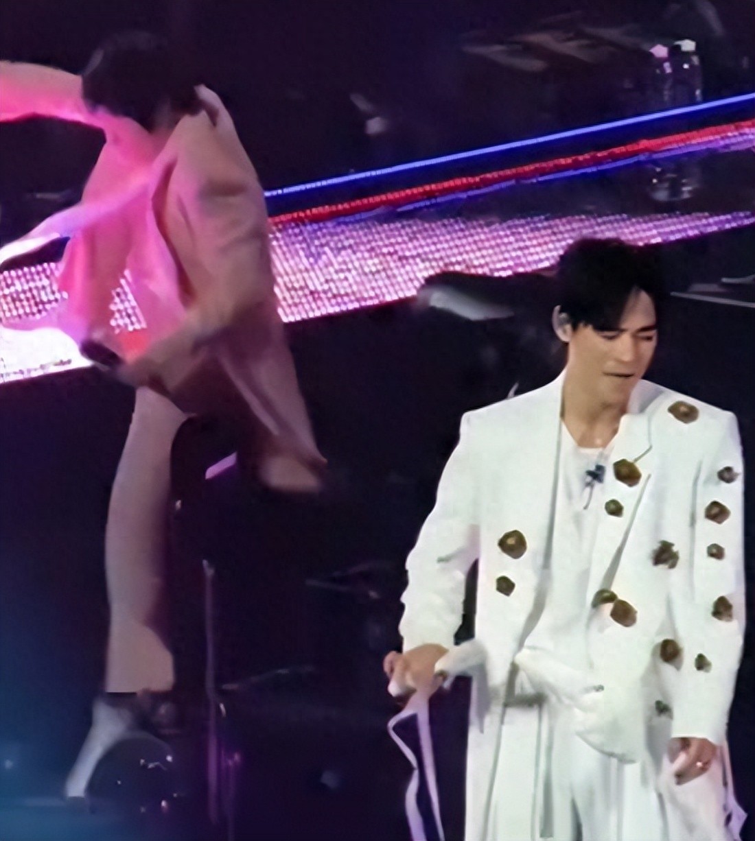 F4重组演唱会出事了,代班来的五月天阿信在观众眼皮底下从两米高的舞台摔下去。