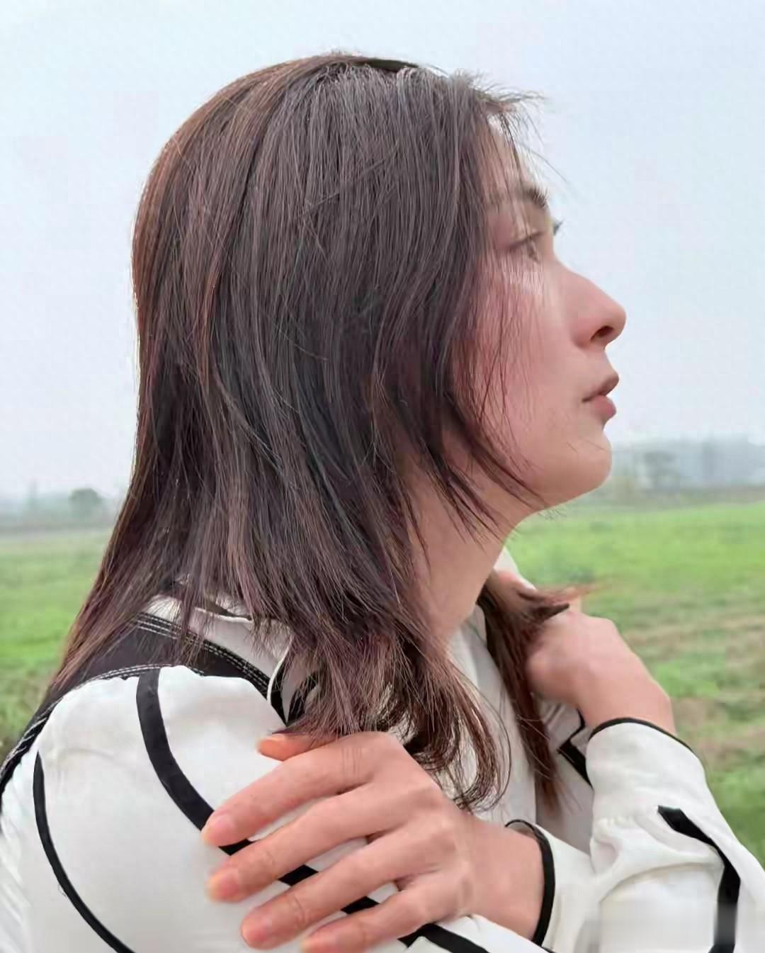 三哈发了一张照片,清明节,福建,她给去世的老公扫墓,没哭没闹,就一张图:双手抱住自己,低着头。