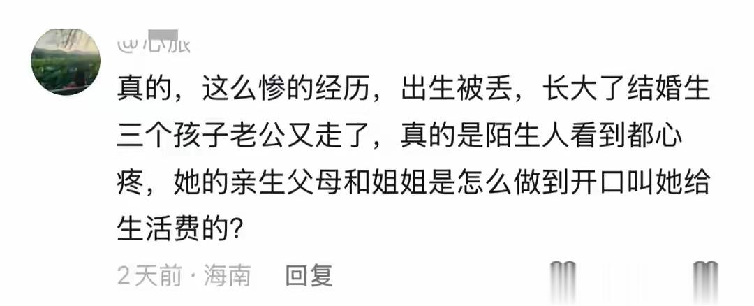 那温州的父母呢?大姐二姐都在身边,能帮就帮,三哈呢?嫁出去了,老公没了,一个人拉扯三个娃,按理说她才是需要父母拉一把的人。