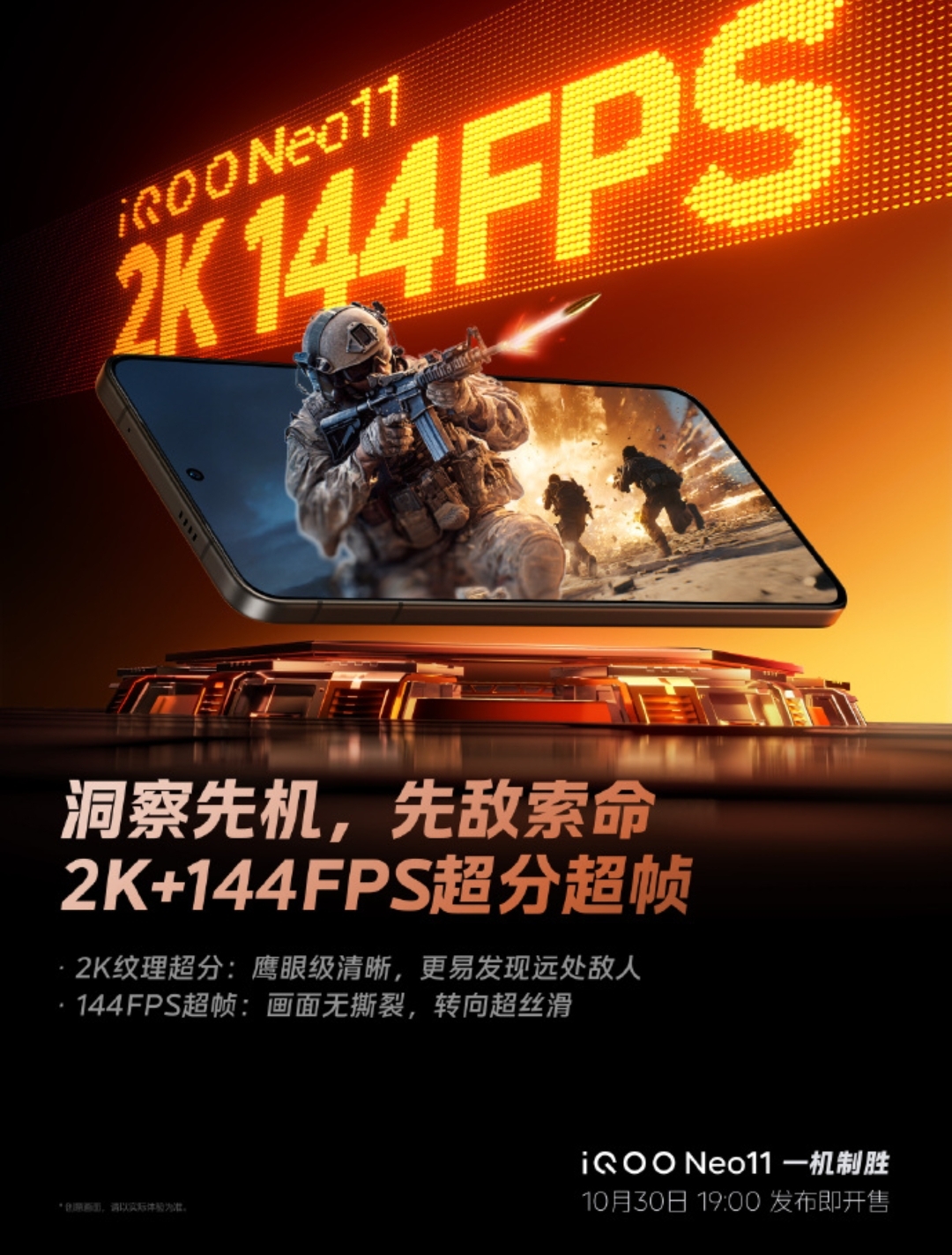 iQOO Neo11搭载2K 144Hz珠峰屏,同档唯一2K LTPO旗舰屏2K超高分辨率,510 PPI自适应刷新率,更低功耗。屏幕色偏控制超能打,最新Q10+发光器件,无论是正面45°侧面、30°大侧面,控制色偏水平1.7JNCD。iQOO Neo11骁龙8至尊版,性能表现安兔兔综合跑分超354万,在强劲性能下支持2K+144FPS超分超帧,游戏中体验画面无撕裂,转向超丝滑。
