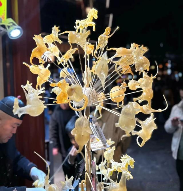 这里的手艺人都是非遗“地下党”——吹糖人的老者是省级传承人,银匠铺的敲打声藏着彝族錾刻绝技