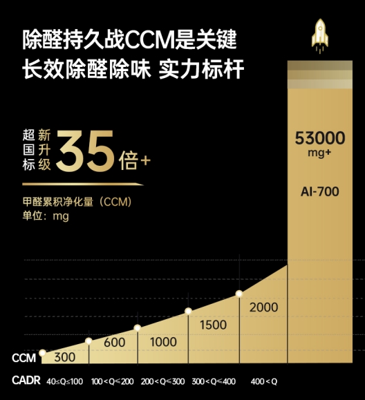 AI700是370的除醛升级款,甲醛净化力超国标35倍!整机同样为纯物理过滤,不会产生臭氧或者化学物质等污染。