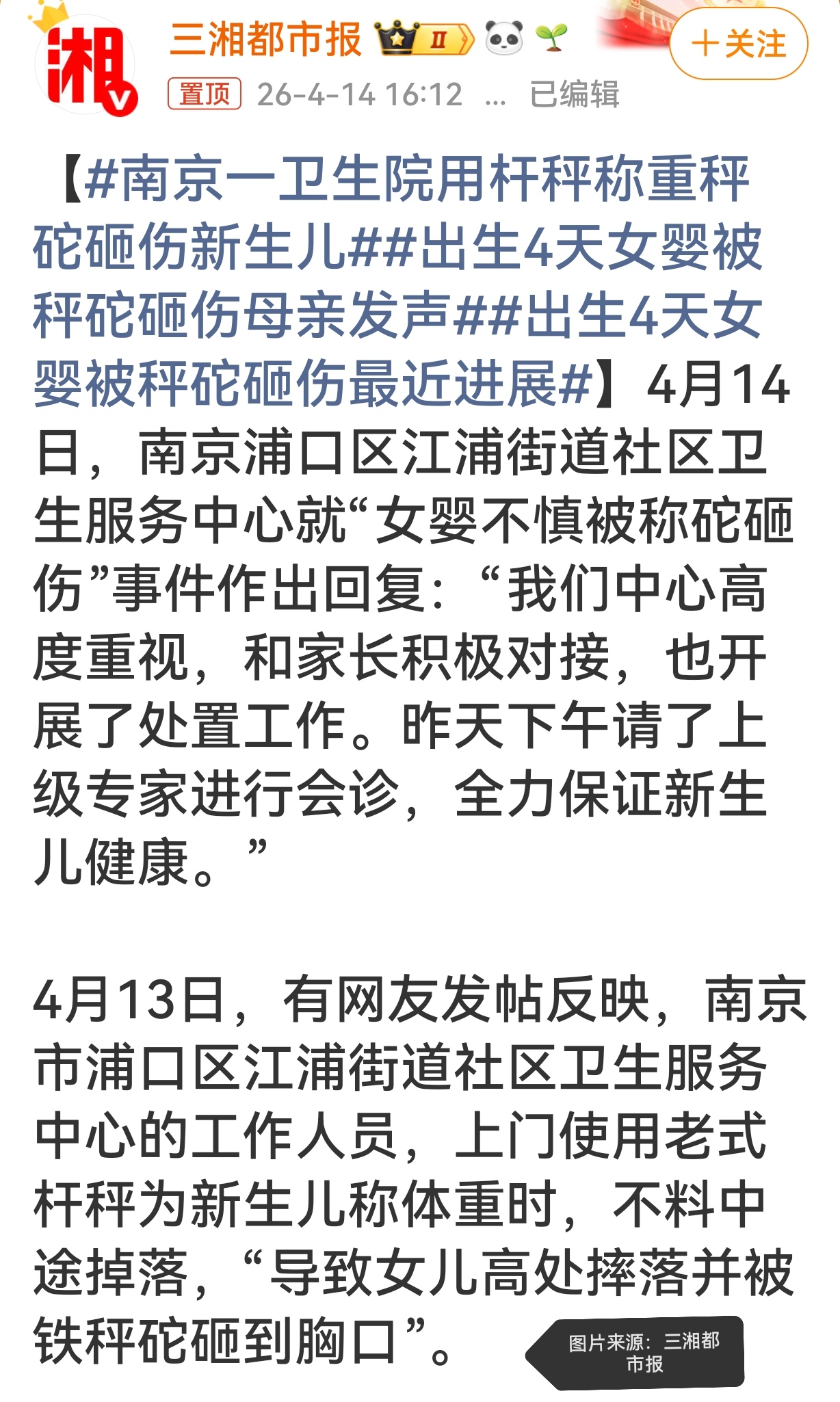 #南京卫生院秤砣砸伤新生儿# #新生儿安全无小事# #医疗操作容不得违规#