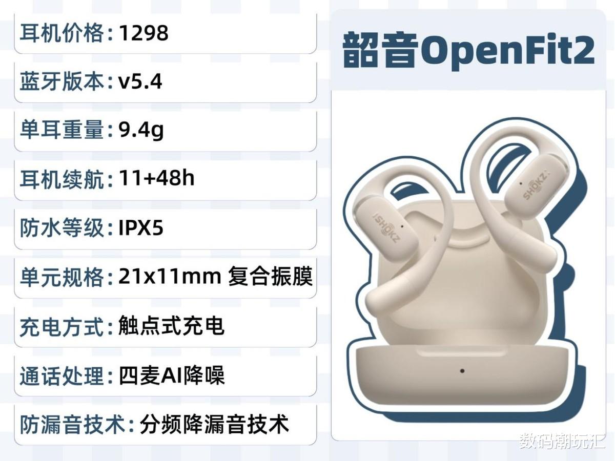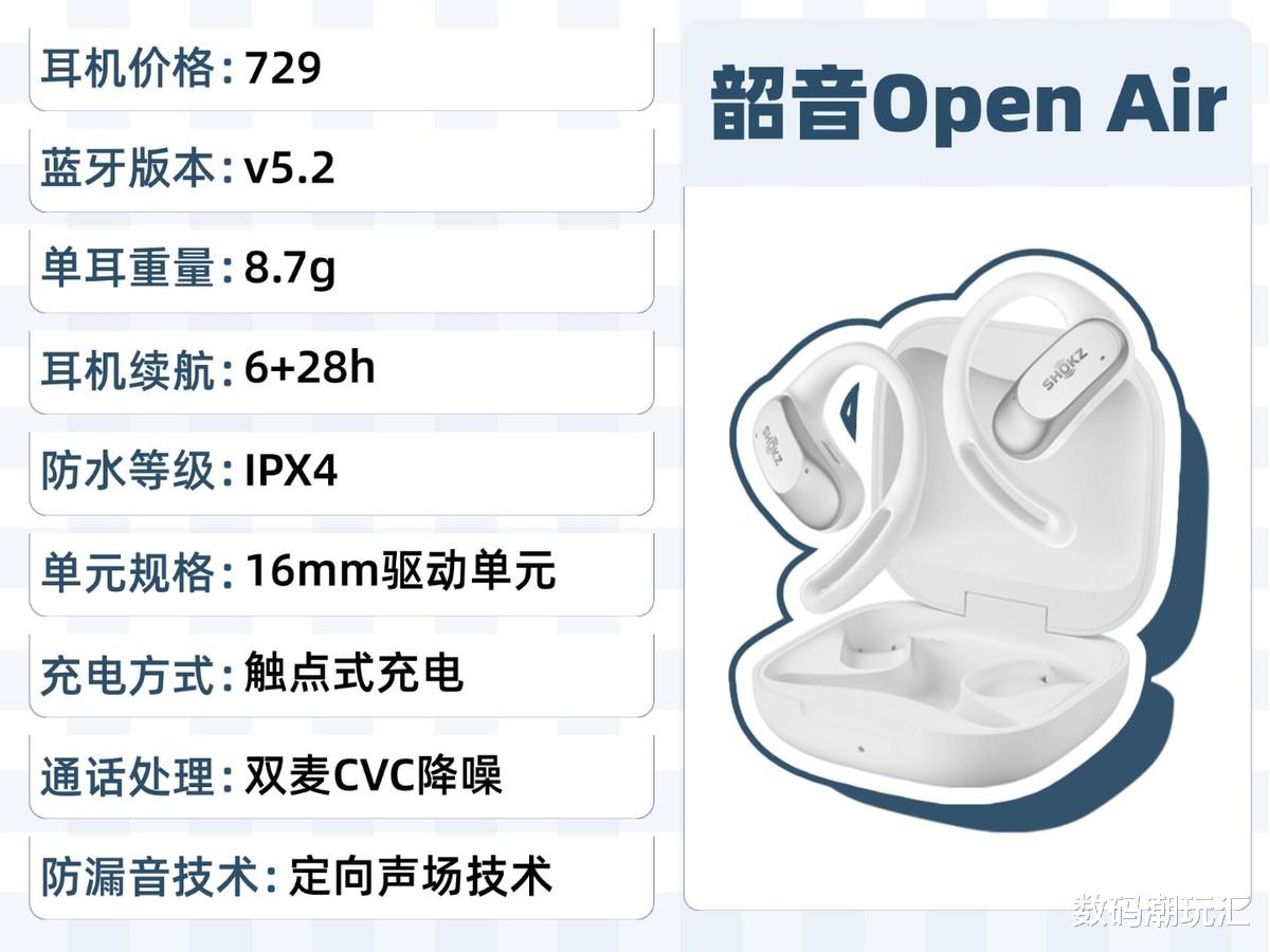 不过它有点挑耳型,大耳朵的朋友戴久了可能会觉得夹得慌,耳朵偏小的朋友戴就刚刚好,贴合度很在线。它还带了定向声场技术,我实际用下来,防漏音效果确实不错,这点值得夸夸。但短板也挺明显:防水等级不高,音质方面没什么特别出彩的地方,整体配置比较中规中矩,性价比不算突出~