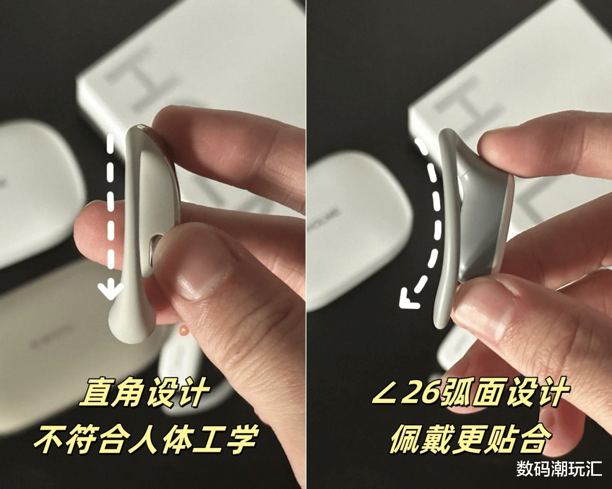 要是你在找高性价比耳机,这款真心可以直接放进备选清单,首先佩戴感就赢麻了,工学弧面设计刚好贴住耳廓,戴得又稳又舒服。机身做得特别轻巧,外层还裹了液态硅胶,摸起来滑溜溜的细腻得很。戴在耳朵上轻得跟没戴一样,完全没什么压迫感,久戴也不硌耳。