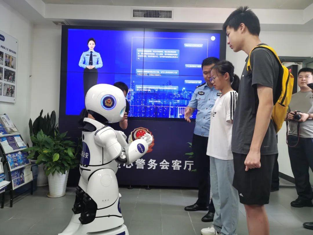 “群众可以通过与智能机器人进行语音对话,获得贴心的指引服务。”据高新民警介绍,移动式智能机器人具有自主巡逻、全景监控、智能识别、宣传防范、一键报警等功能,并基于目前最先进的无人智能驾驶系统,能实现自主移动、4G/5G远程实时操控,拥有全息感知避障系统,行进过程中可自动规划最优行驶路线且智能避障;AI智能机器人则具备迎宾服务和导览讲解等功能,对公安行政服务的2246个事项进行准确引导服务。同时,AI智能机器人还能提供天气、酒店、景点查询服务。