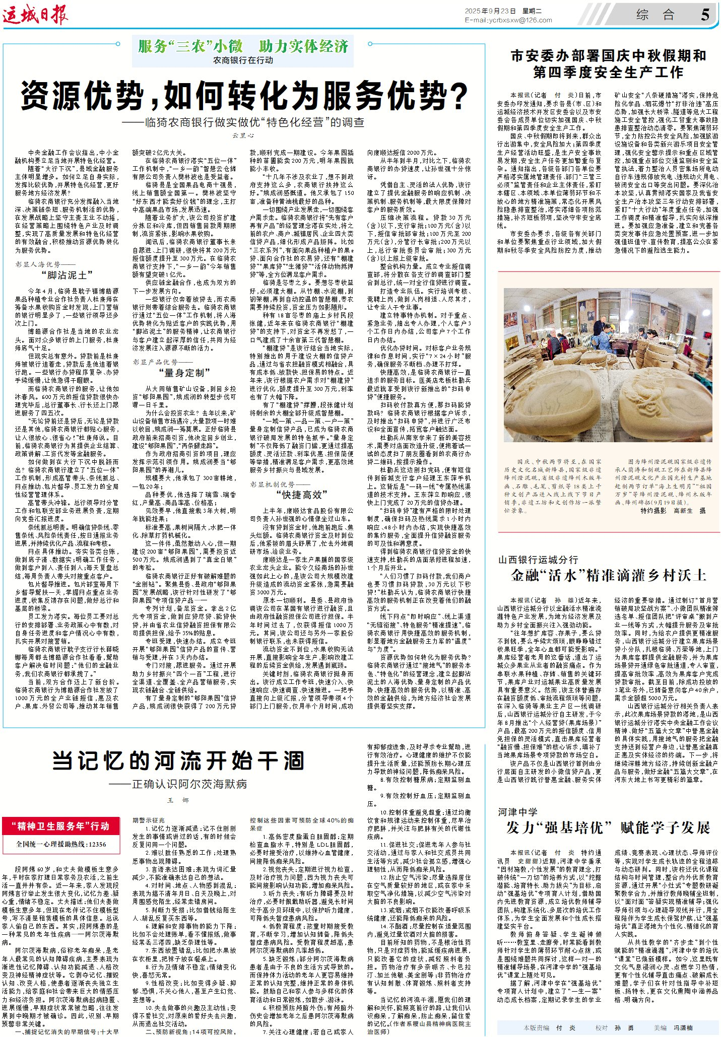 随着“大行下沉”,县域金融服务主体明显增多。如何立足自身实际,发挥比较优势,开展特色化经营,更好服务地方经济发展?