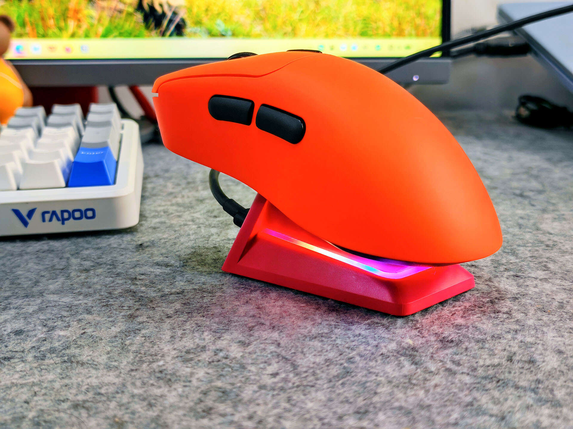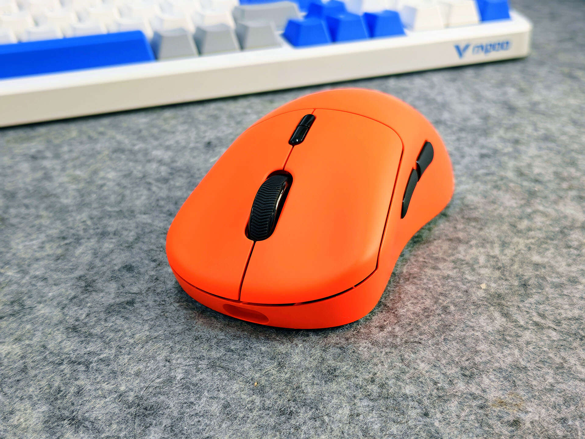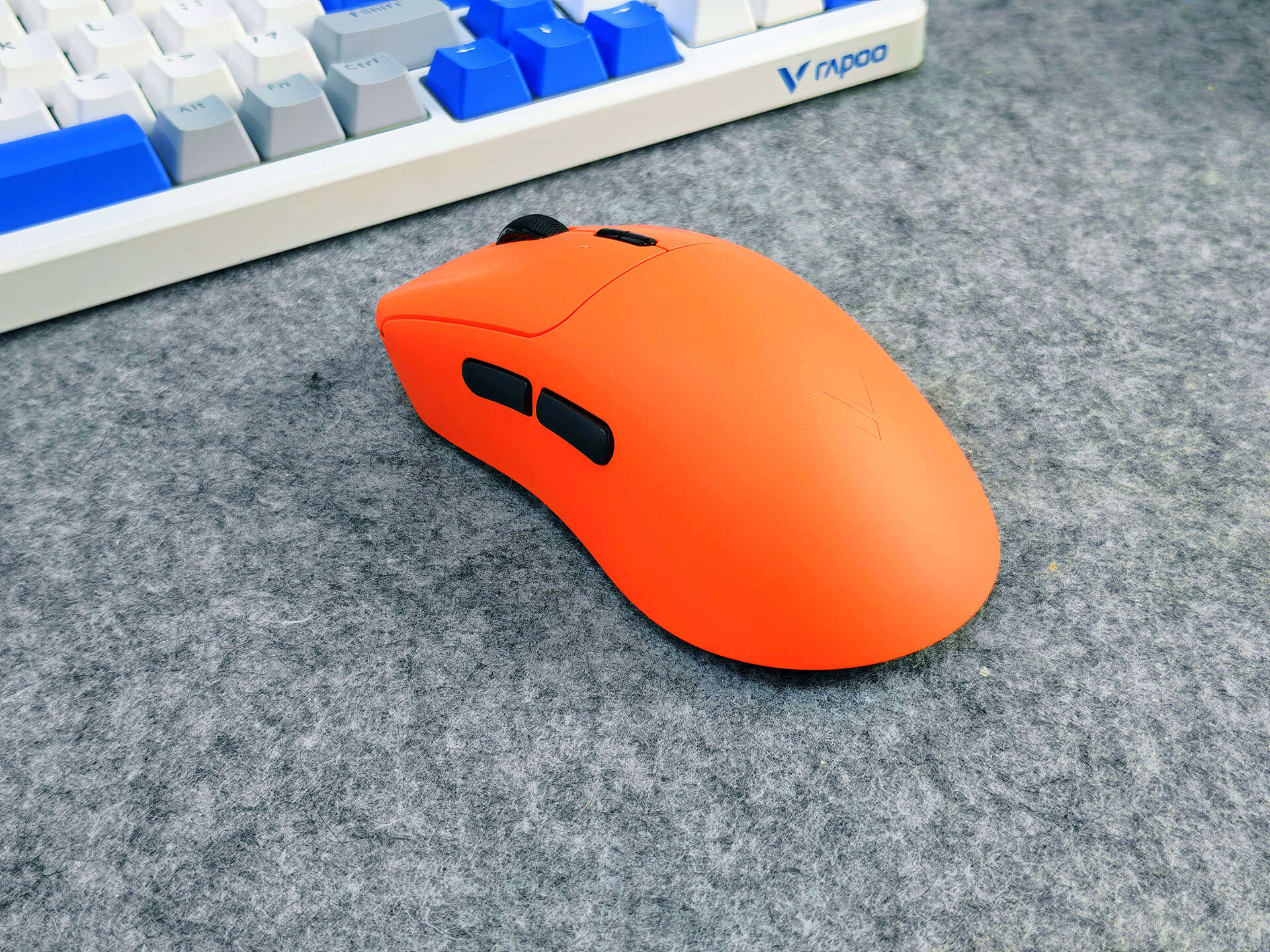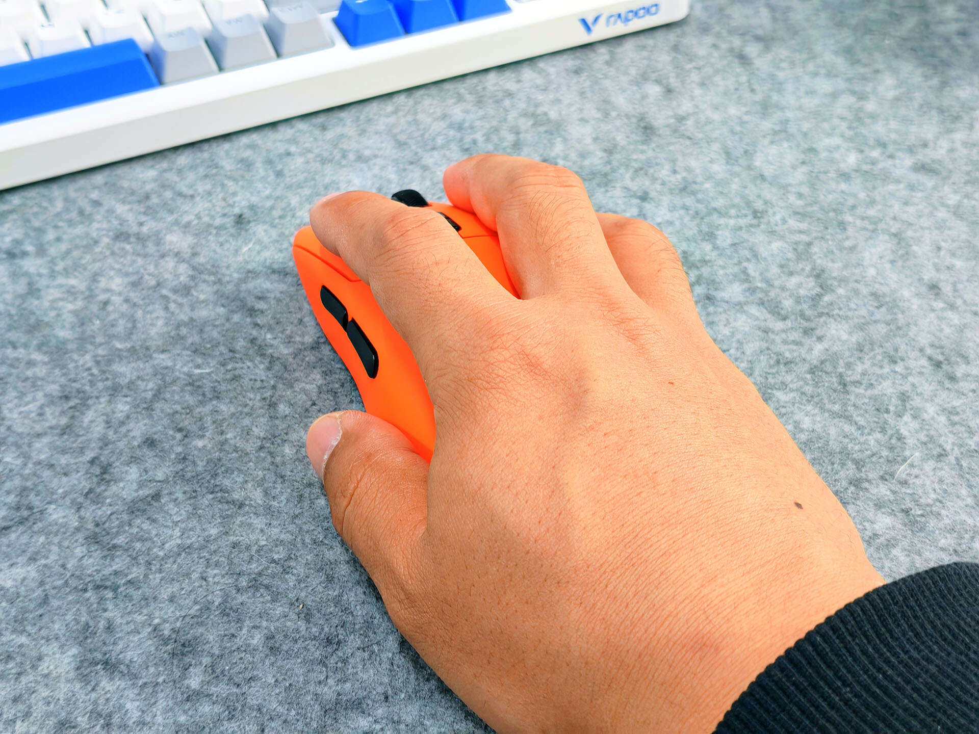 雷柏VT3二代适合19-21cm中大手型玩家使用,采用右手非对称人体工学设计,我入手的配色为焰影橙,鲜活透亮的橙色调不仅视觉辨识度拉满,还具备耐脏特性,日常使用不用小心翼翼打理,彻底打破了传统电竞鼠标非黑即白的沉闷格局,这颜值党简直是独一档的存在。