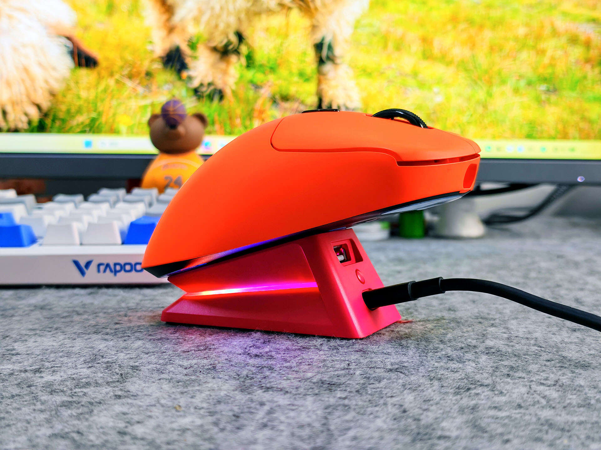 而在使用过程中,将P5 PLUS充电底座放在桌面上就能充当鼠标底座,让鼠标摆放更规整,桌面更整洁,底座自带RGB背光,氛围感拉满,电竞桌面的颜值直接提升一个档次,另外还集成了USB扩展口,功能性再度升级,日常使用能拓展更多接口,实用性拉满。