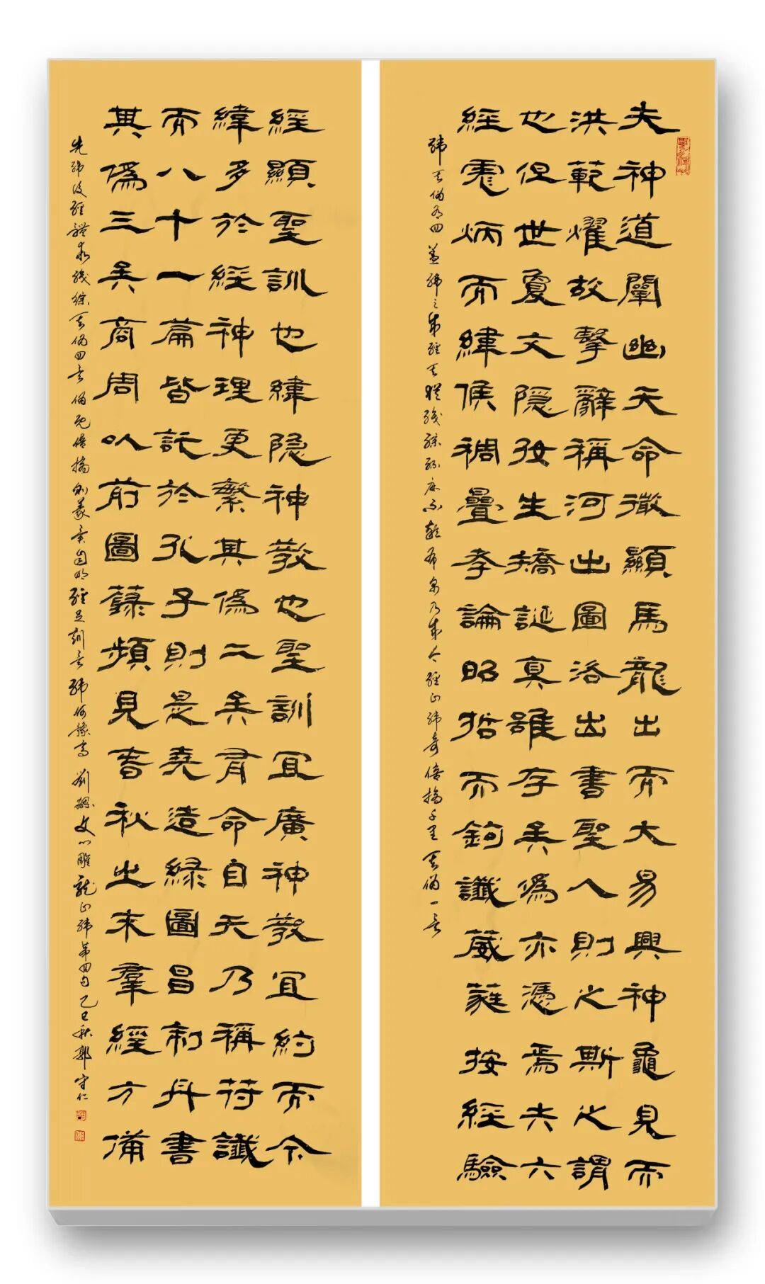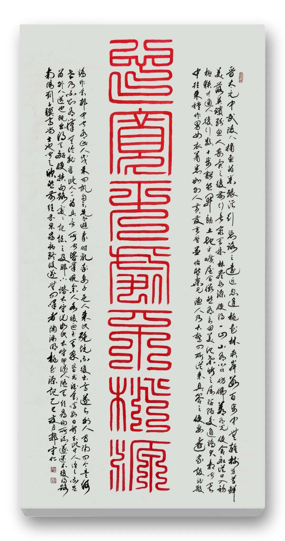 郭守仁先生的书法章法浑然天成,疏密、收放、聚散等艺术处理手法运用得自然流畅。用笔朴实无华却内韵十足,行笔轻松自如,轻重、疾徐变化多端。字形结构尽显汉代摩崖刻石隶书的特质,于平实之中暗藏奇趣,实现了单字与通篇章法的完美结合,创作感强烈。