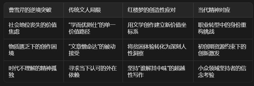 这场修炼的本质,是将曹雪芹的创造性坚持转化为现代人的精神资源。当你能在失落中重建意义,在寂寞中孕育创造,便是对“红楼梦精神”的当代传承——不是模仿其贵族叙事,而是继承那种“于废墟上建花园”的生命韧性。