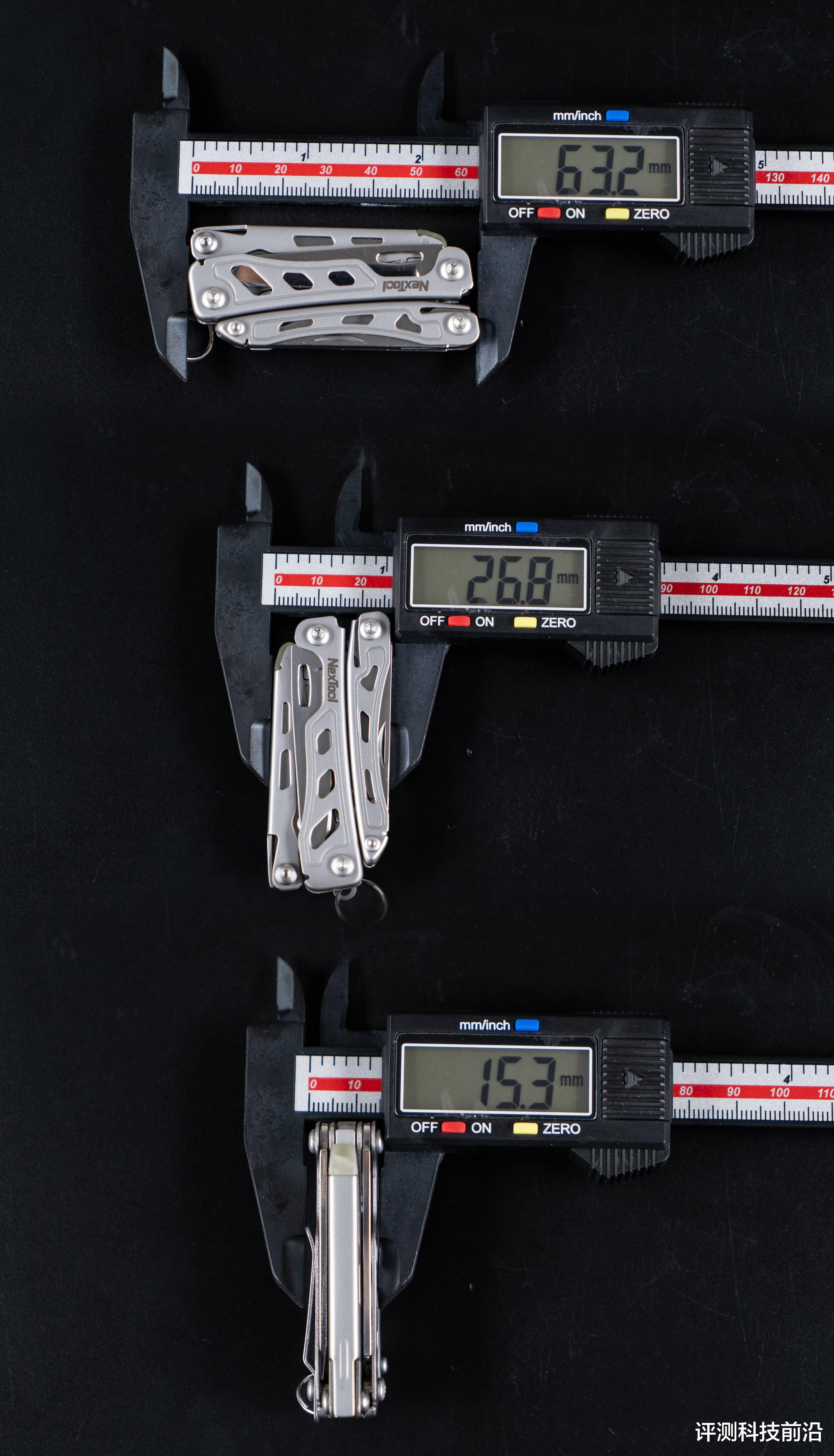 ▼量一下尺寸,长宽厚大约为63.2*26.8*15.3mm,非常迷你,还没一个手心大,这尺寸在多合一工具里都算得上袖珍型了