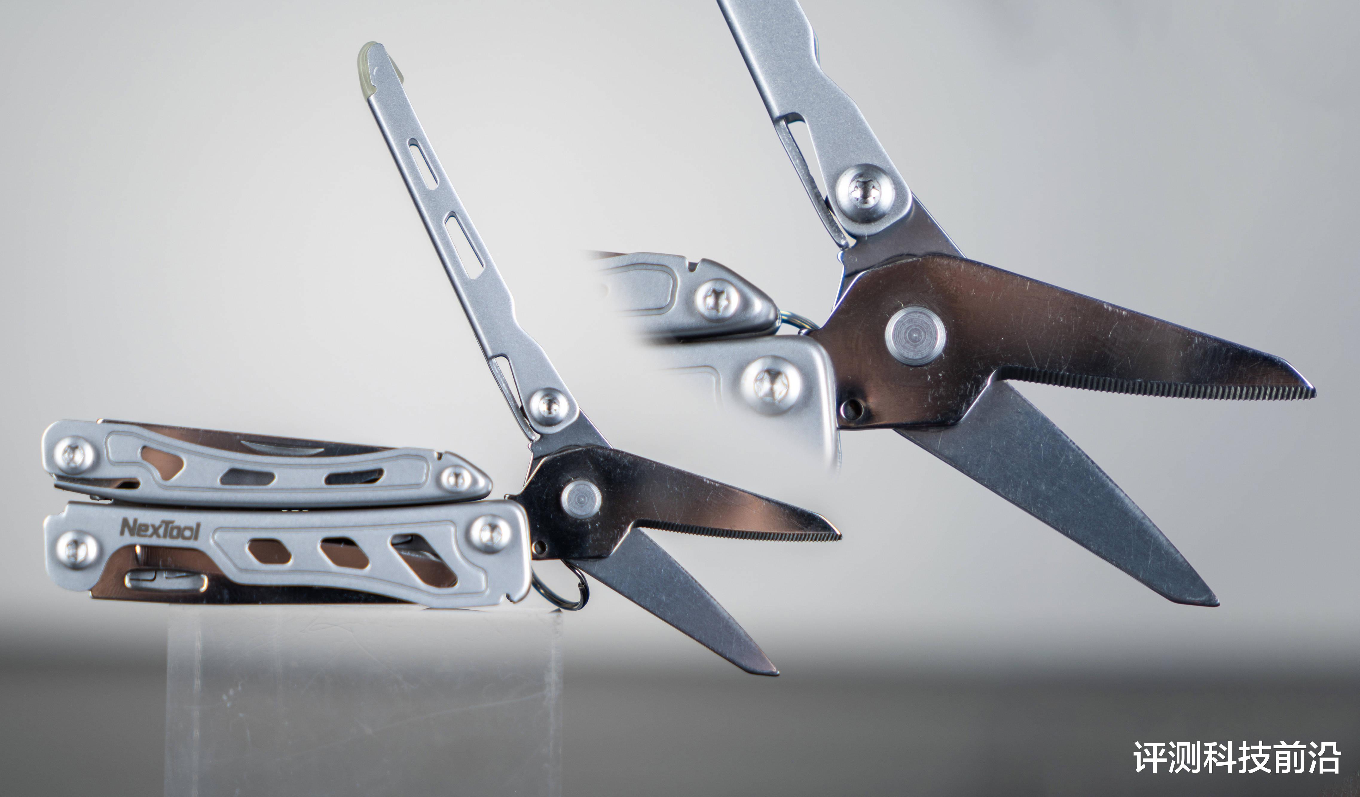 ▼第一种功能为剪刀,官方称为纳剪系统2.0,升级了锯齿刃+弧形剪,剪切时更加平稳省力,不易打滑,实际体验确实如此,手感很丝滑;展开后的手柄弧度设计也很合适,握持很舒服