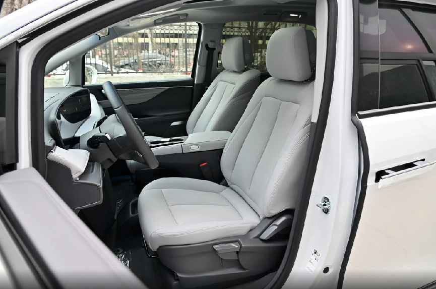 拉开车门,进入别克GL8的座舱,层次分明的中控台通过软皮、金属等元素修饰,看上去高级感十足。30英寸的联屏悬浮在中控台上方,搭载高通骁龙8155芯片,卫星导航、OTA升级以及主副驾驶位语音互联等常规配置均没有缺席,基本贴合主流用户的使用需求。多辐式方向盘有塑料和真皮两种材质,低配版的塑料方向盘有颗粒感,不如真皮的细腻,全系支持四向调节,兼顾到不同身材驾驶员。值得一提的是,虽然该款车为了营造简约的座舱环境,取消了大量实体按键,但依旧留有双闪警示灯,位置与大部分车型一样,紧急情况下也能快速按下。