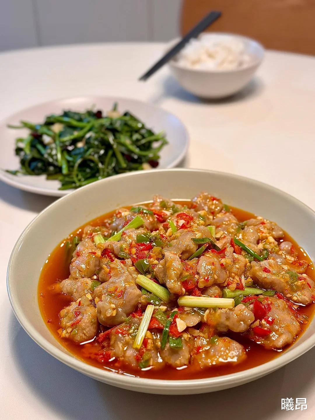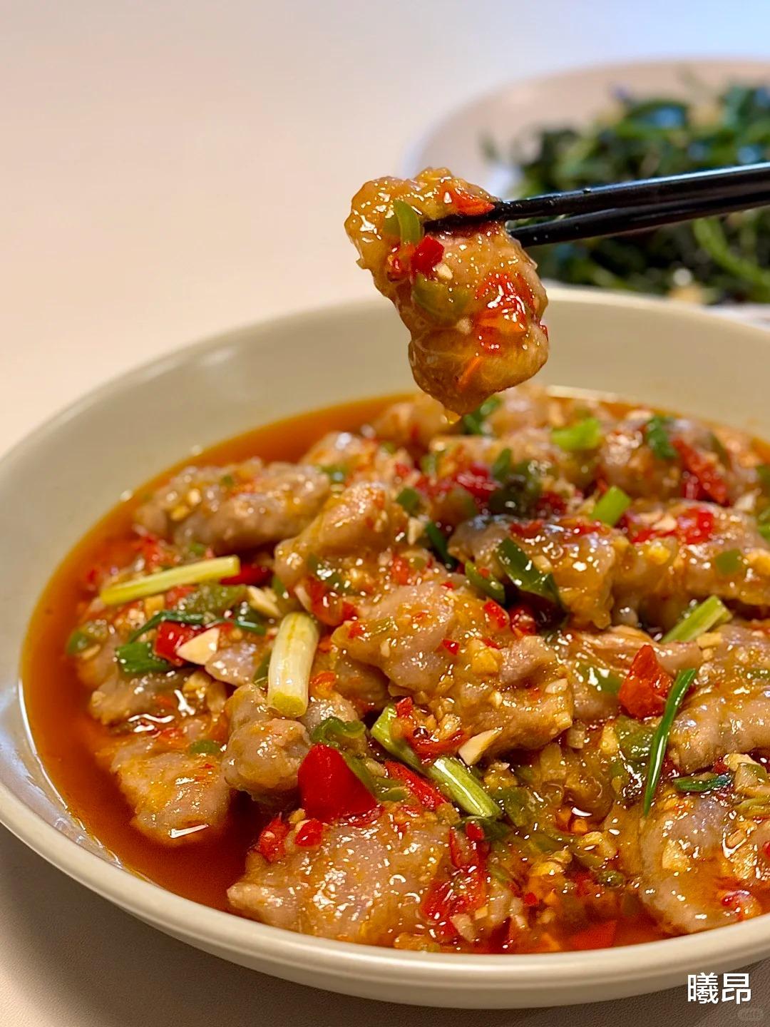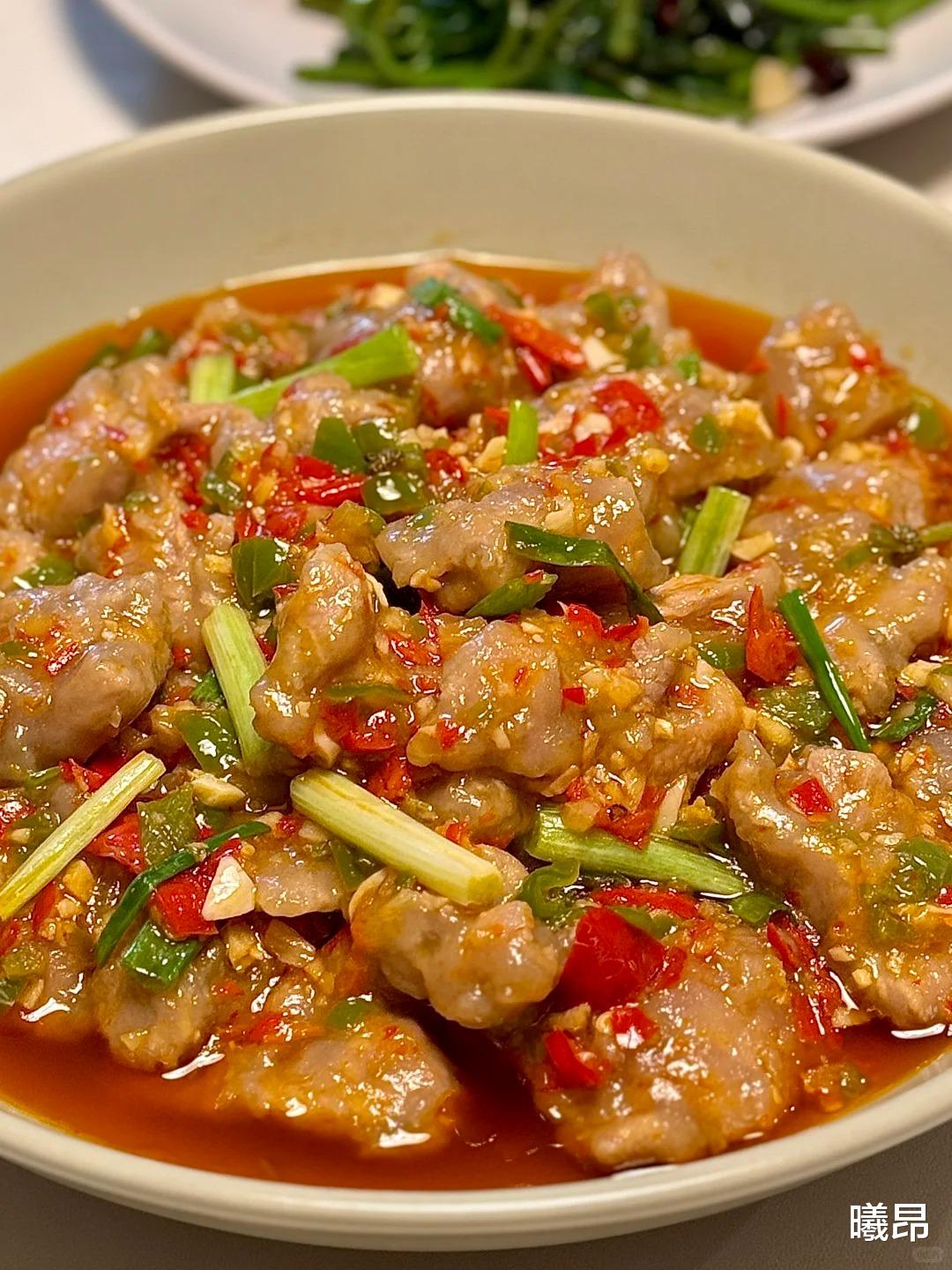 这道泡椒滑肉片的精髓,在于 “滑” 和 “酸辣平衡”。里脊肉经特殊处理后嫩到入口即化,四川泡椒的发酵酸香混着豆瓣酱的醇厚,再裹上薄薄一层芡汁,每一口都带着微微的辣、恰到好处的酸,还有肉汁的鲜,用来下饭简直是 “犯规级” 存在。