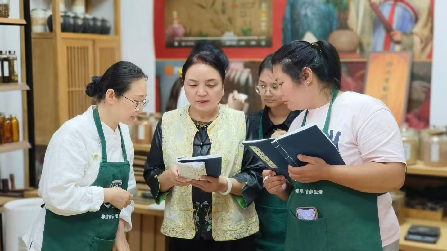 李文双结合自身从艺经历,讲述了牡丹香技艺从 "古法秘传" 到 "文旅名片" 的蜕变之路。自幼跟随祖父习得合香技艺的她,2010年重建神都牡丹香坊后,始终在传承中求突破:既坚守 "牡丹全株入香、窖藏两年成韵" 的古法工序,将牡丹根、茎、叶、花精准配伍;又联合儿子尤琪越(第八代传承人)开发目明香露、古法口脂等年轻化衍生品,通过短视频平台让非遗技艺走进大众视野。