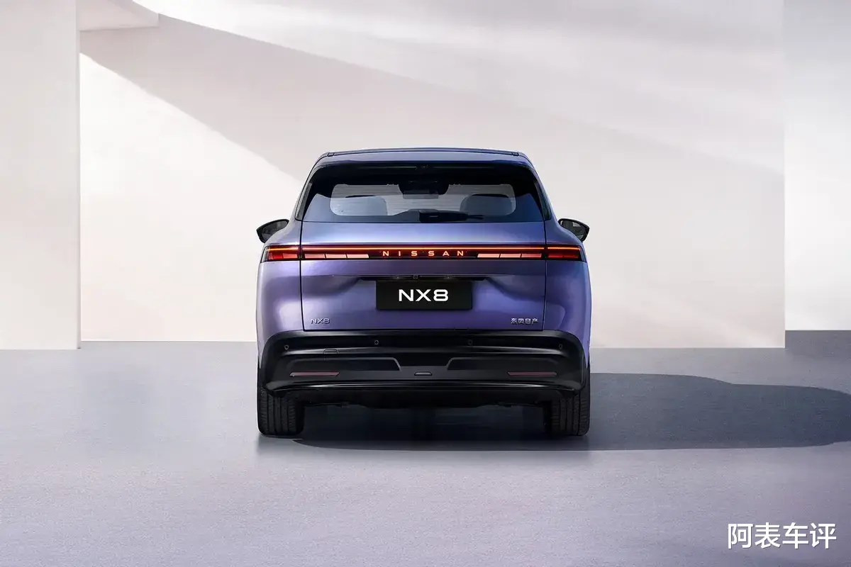 外观设计上,东风日产NX8采用品牌新能源家族化语言,纯电版与增程版外观高度统一,整体风格简约大气,兼顾家用质感与科技辨识度。前脸最具记忆点的是2.4米贯穿式星环灯,搭配分体式灯组与可点亮车标,日间行车与夜间驻车的视觉效果突出;新车提供摩纳哥紫、墨海蓝、翡冷翠绿等六种车漆,覆盖个性年轻化与沉稳家用两种需求。