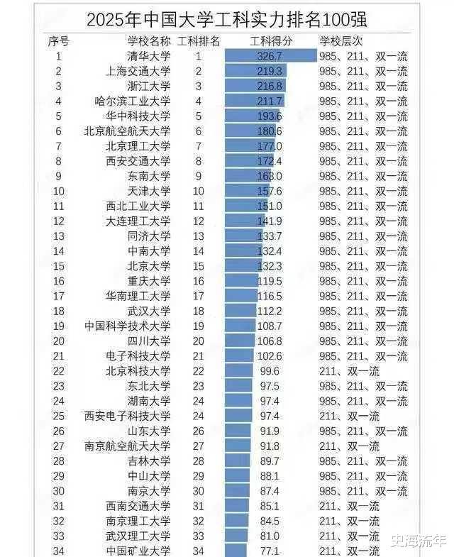 近日,《2025年中国大学工科实力排名100强》正式出炉,这份榜单以科学的评估体系和详实的数据,全面展现了我国高校工科领