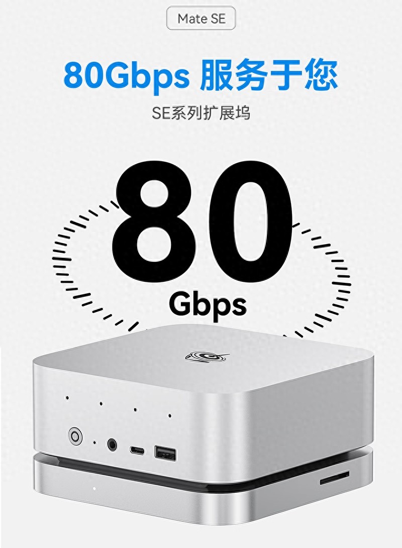 零刻 Mate SE 扩展坞,正是为解决这些痛点而生。它不是一个简单的 Hub,而是专为零刻 SE 系列打造的“性能外挂”。它将专业级 80Gbps 传输能力和最高 16TB 的高速存储带到你的桌面,在不破坏极简美学的前提下,彻底解封了迷你主机的全部潜能。